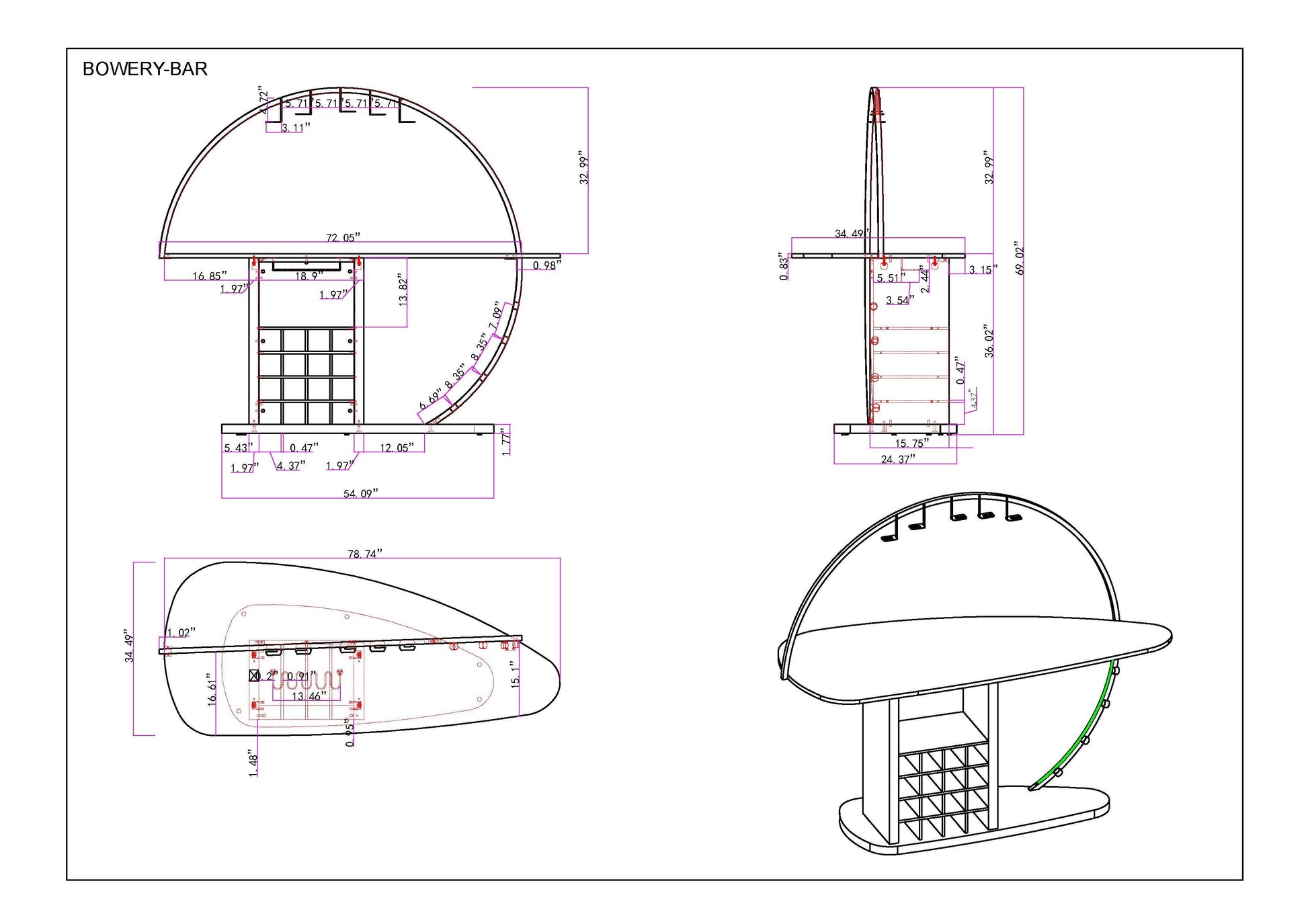 Ancho (W)78,74"Profundidad (D)34,49"Altura (H)69.02"