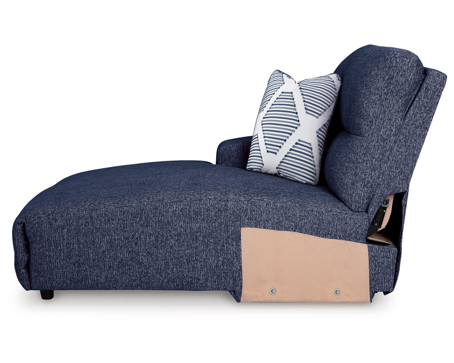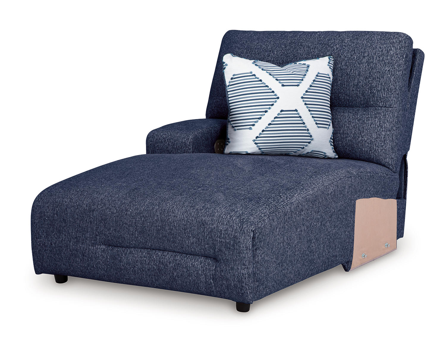 Meet the Acklen Place Left-Arm Facing Power Reclining Back Chaise in Navy—a modern seating solution crafted for comfort and versatility. With a motorized reclining back and a full chaise, it invites effortless relaxation for everyday lounging or entertaining guests. The navy upholstery offers a timeless, refined look that suits a range of living spaces.