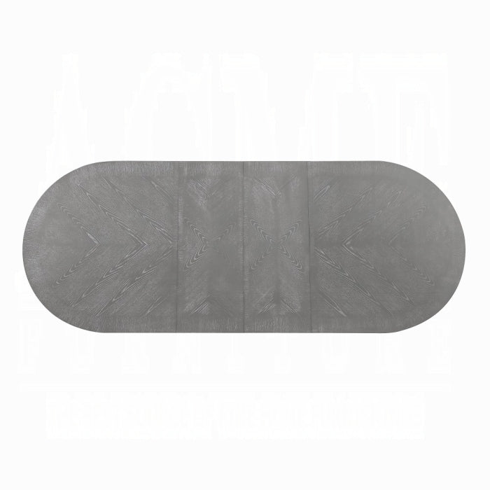 - Finish & texture: Weathered gray oak with light wooden grains on a textured oval surface.