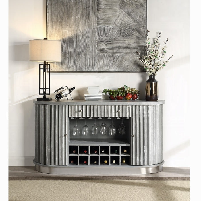 Built to endure daily use, the Adalynn Server combines a solid wooden frame with a durable metal base to deliver reliable stability over time. Its weathered finish hides minor wear and maintains a fresh, stylish appearance with less maintenance. The piece offers strong value within its category, providing practical storage and display at a competitive price point while enhancing your dining area’s overall aesthetic.