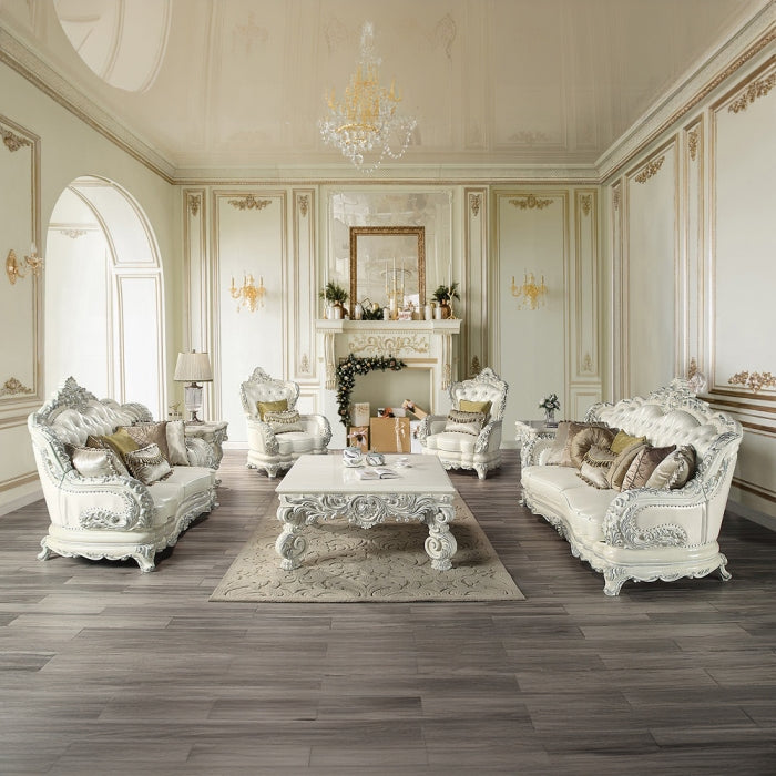 Be the talk of the town with the immaculate Adara sofa. It features a traditional camel-back silhouette and a button-tufted backrest for timeless detail. An extravagant crown molding sits atop the frame, delivering a dramatic wow factor. This set includes 7 decorative pillows to complete the look and enhance comfort in your living space.