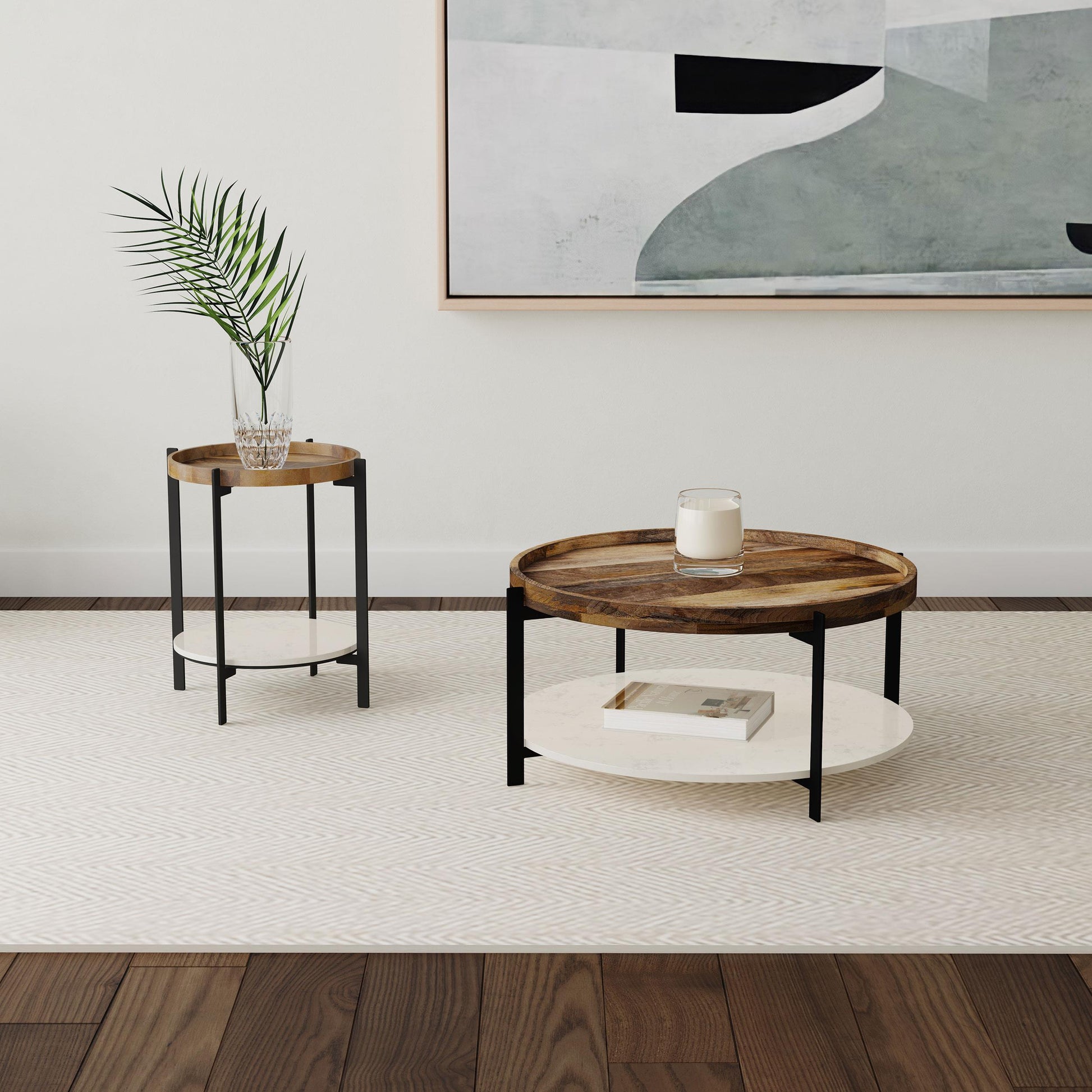 Adhvik Round End Side Table – Marble Shelf, Natural & Black