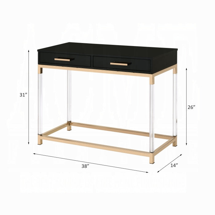 Match your seating ensemble with this Adiel Sofa Table that lends a modern flair to your living room. The beautiful metal frame in a gold finish adds a touch of glam to this contemporary piece, with clear acrylic legs that elegantly frame the design. The rectangular tabletop completes the sleek silhouette, making it a versatile surface for lamps, decor, or daily essentials.