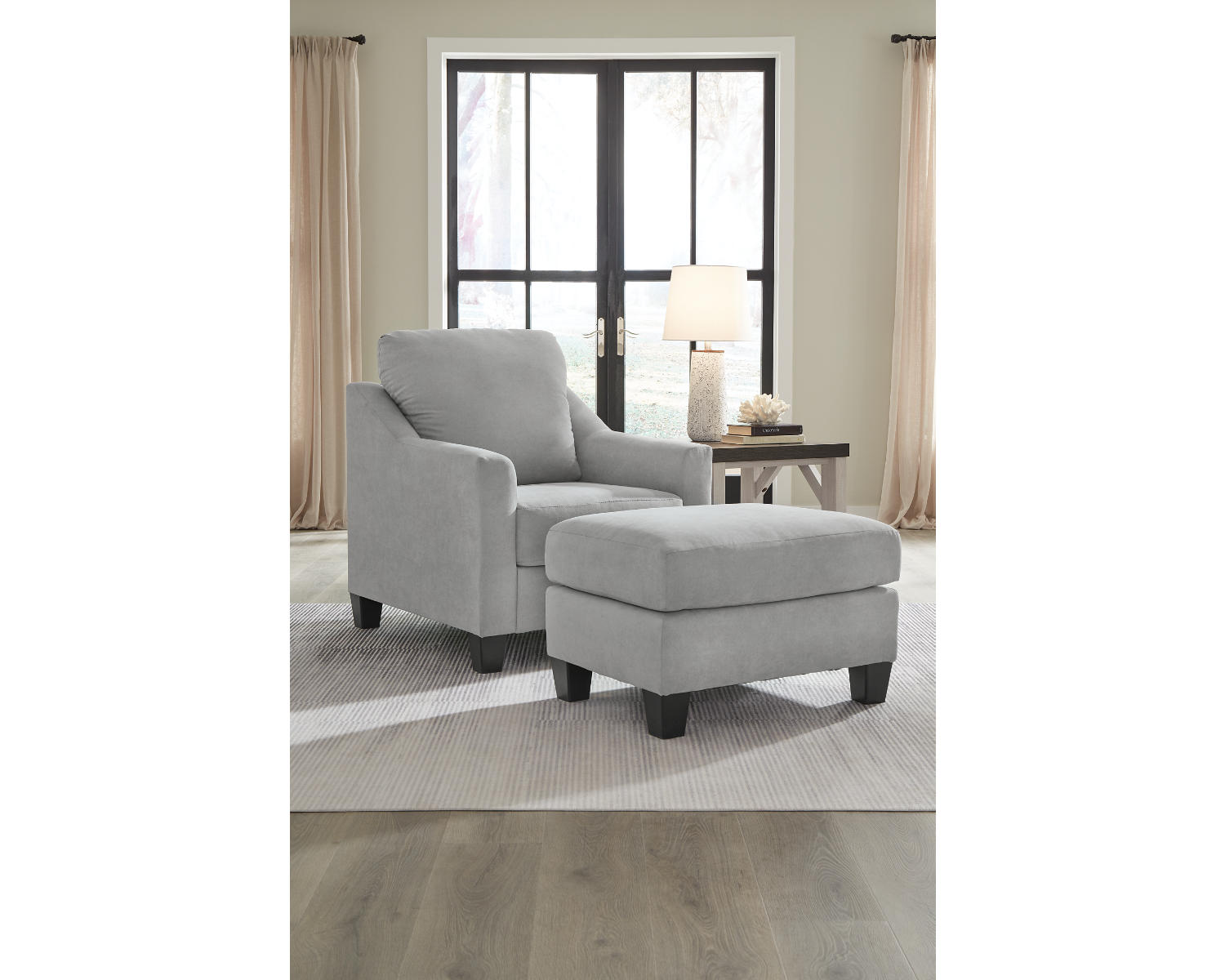 - Coordinated chair and ottoman in a versatile Shadow color for a cohesive look.