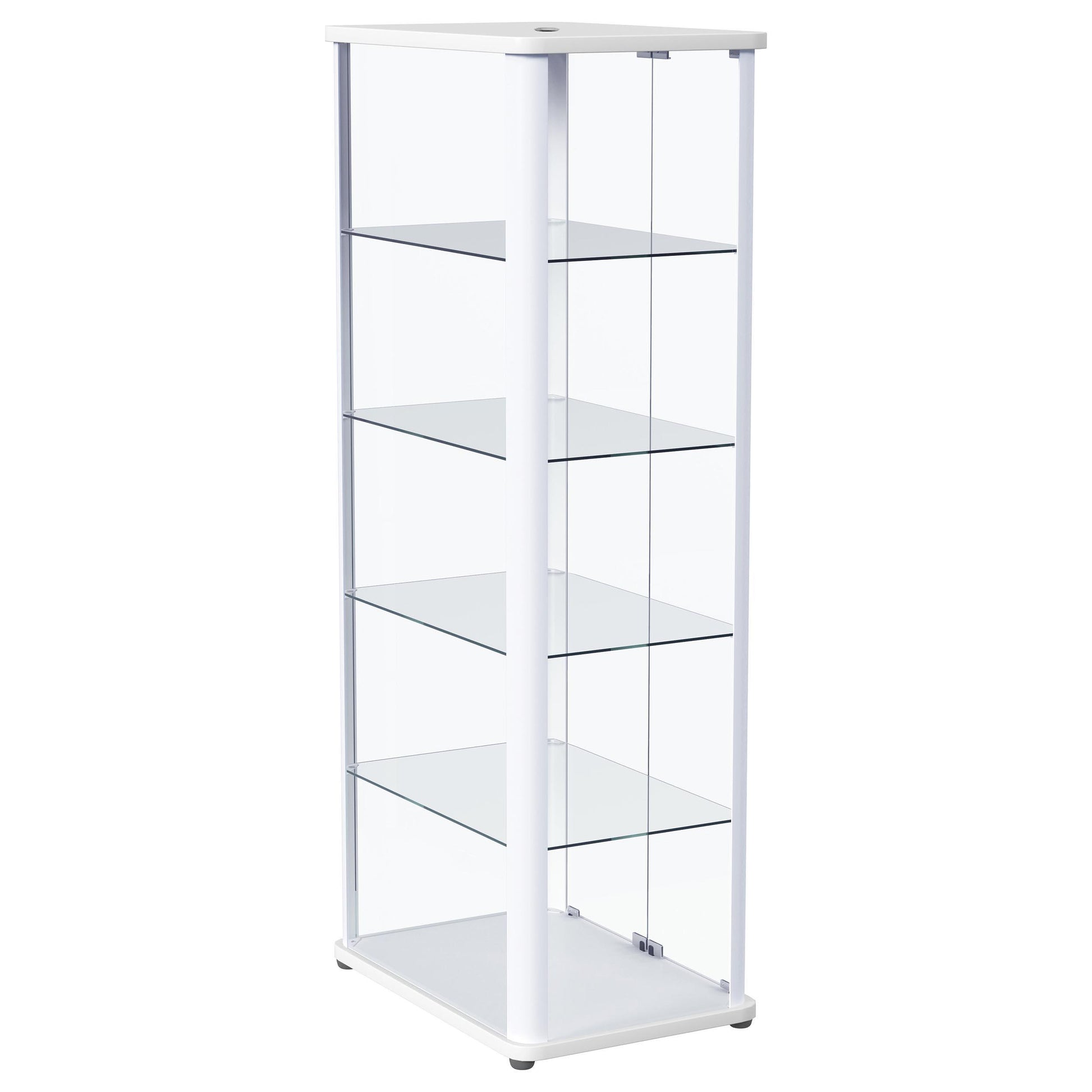 Showcase your collectibles in style with the Aero 5-shelf Display Curio Cabinet. This white cabinet is designed for collectors and display enthusiasts who want a clean, contemporary centerpiece for living rooms, dining areas, or offices. The built-in LED lighting highlights every shelf, making your favorite pieces stand out with soft, even illumination.