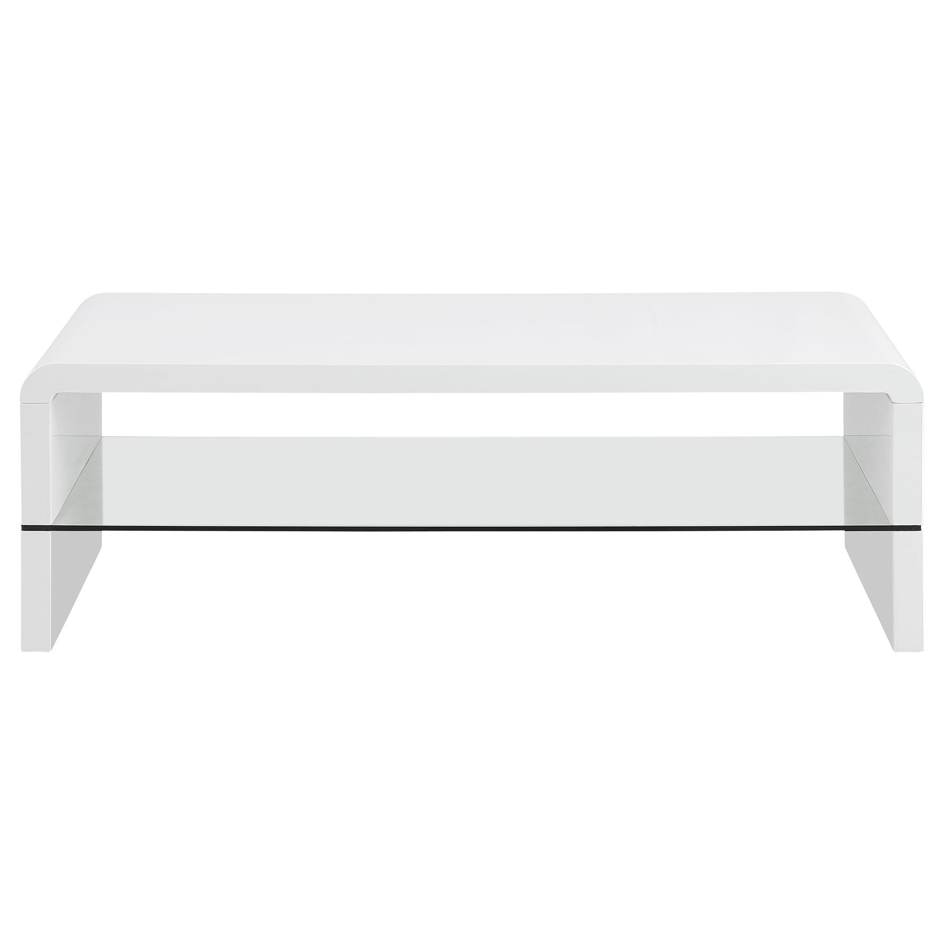 Airell Rectangular Coffee Table with Shelf White High Gloss