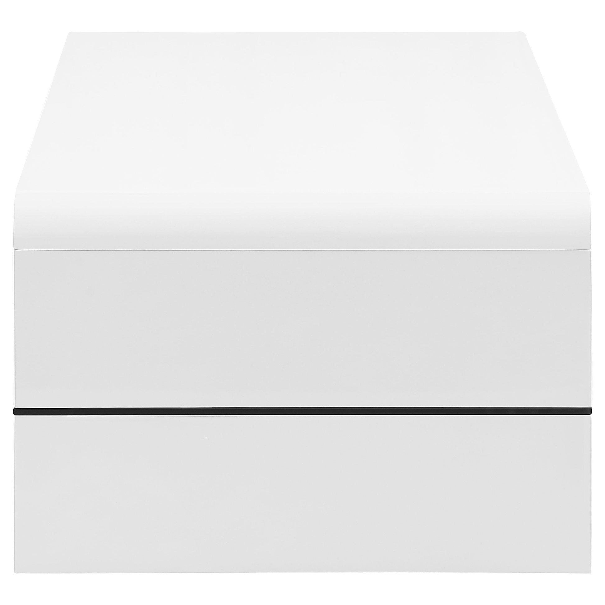 - White high-gloss finish provides a crisp, contemporary look that’s easy to wipe clean.
