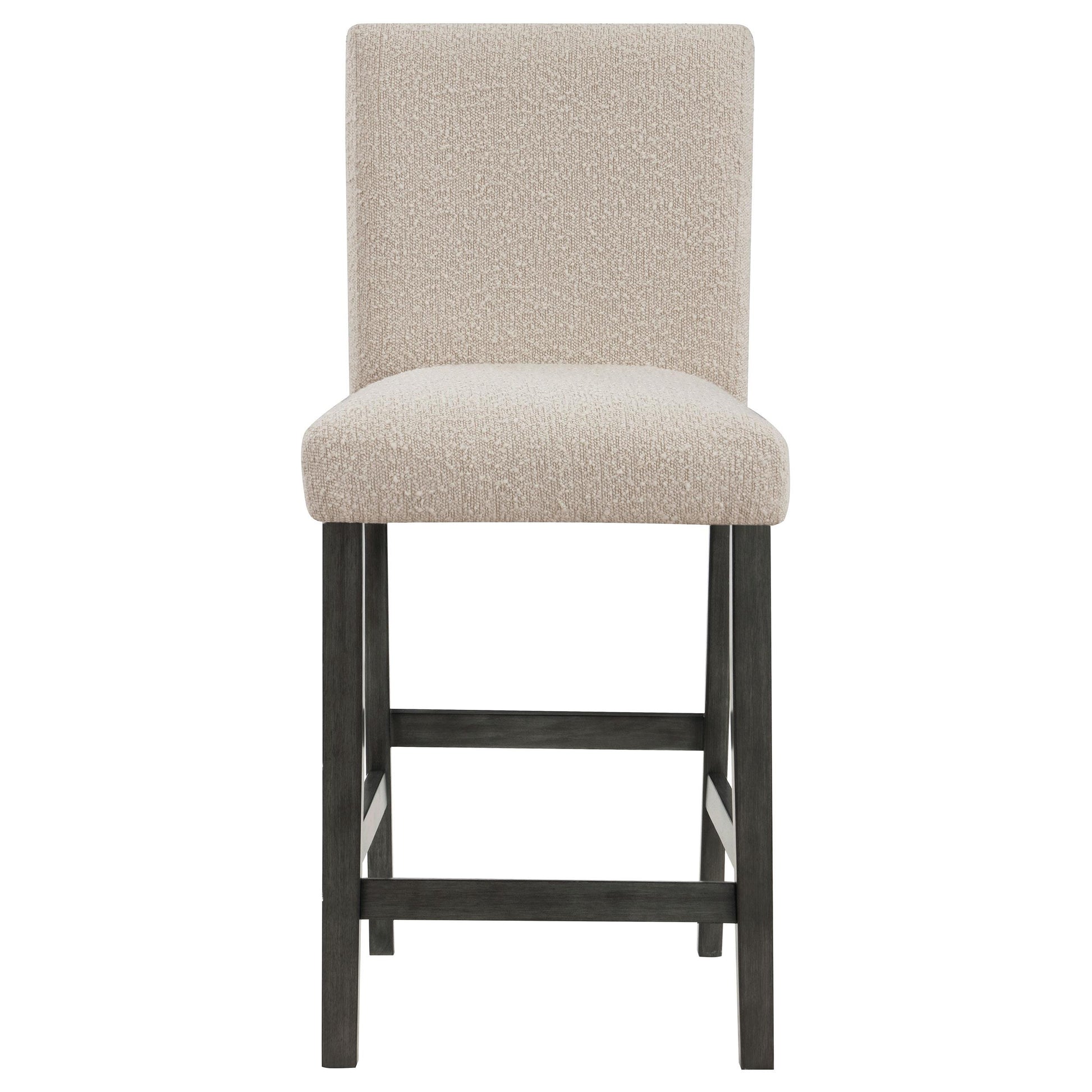 Meet Alba Boucle Upholstered Counter Chairs in Beige — a versatile pair built for everyday dining and casual gatherings at your kitchen island or bar-height table. This set of two chairs blends soft, textured fabric with clean lines to add warmth and style to your space. Ideal for small families, apartments, or anyone seeking affordable, stylish counter seating.