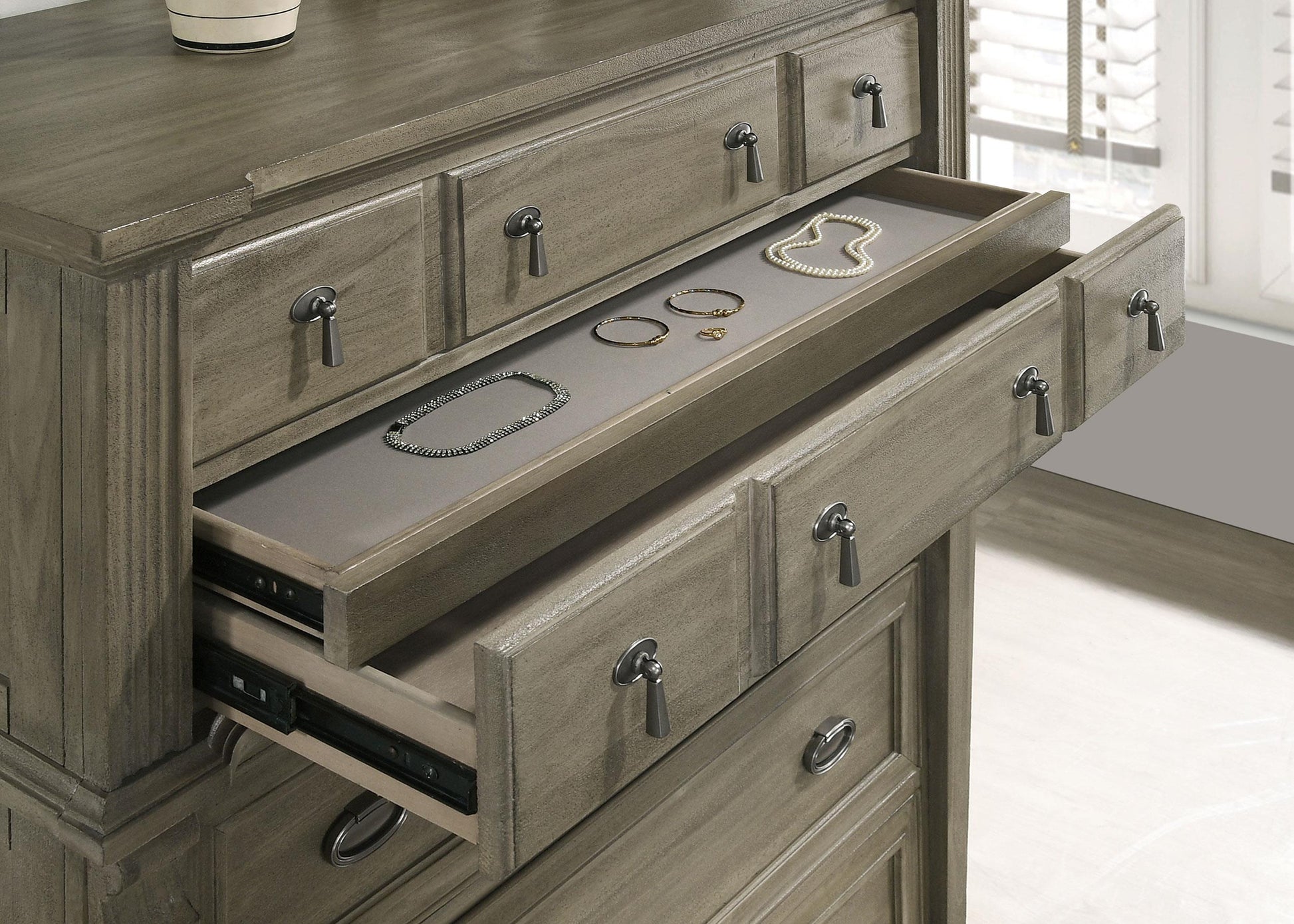 Durable construction with sturdy Alderwood ensures long-lasting performance for daily use. The five-drawer layout keeps items neatly organized, helping you maintain a tidy space. The French Grey finish provides a versatile look that complements a wide range of bedroom styles. All of this is offered at a competitive price point, delivering solid value for a quality Alderwood chest in this finish.