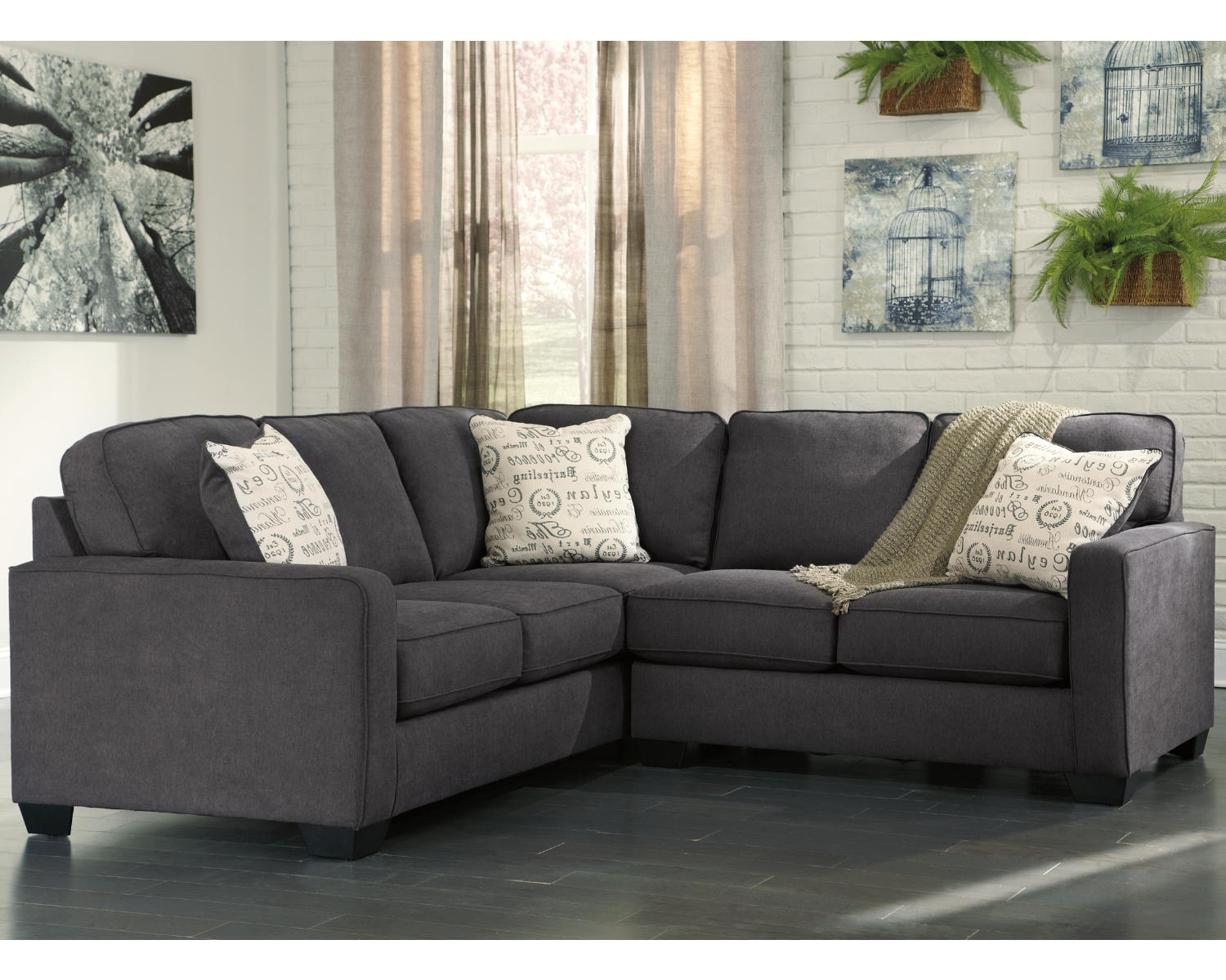 Designed for durability, the Alenya sectional aims to hold up to daily use with a sturdy construction and comfortable cushions that maintain their shape over time. Its charcoal finish stays versatile and easy to coordinate with existing furniture, while the 2-piece design helps you maximize seating without overwhelming a room. All of these benefits are offered at a competitive price point, delivering solid value for a stylish, functional living room solution.