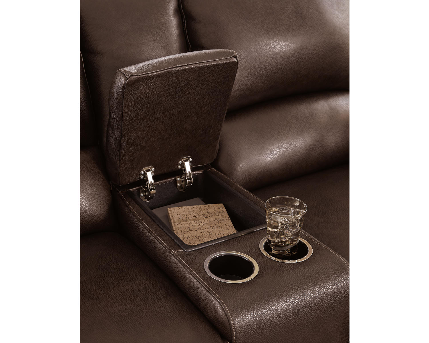 - Built‑in console with storage and cup holders for easy access while lounging.