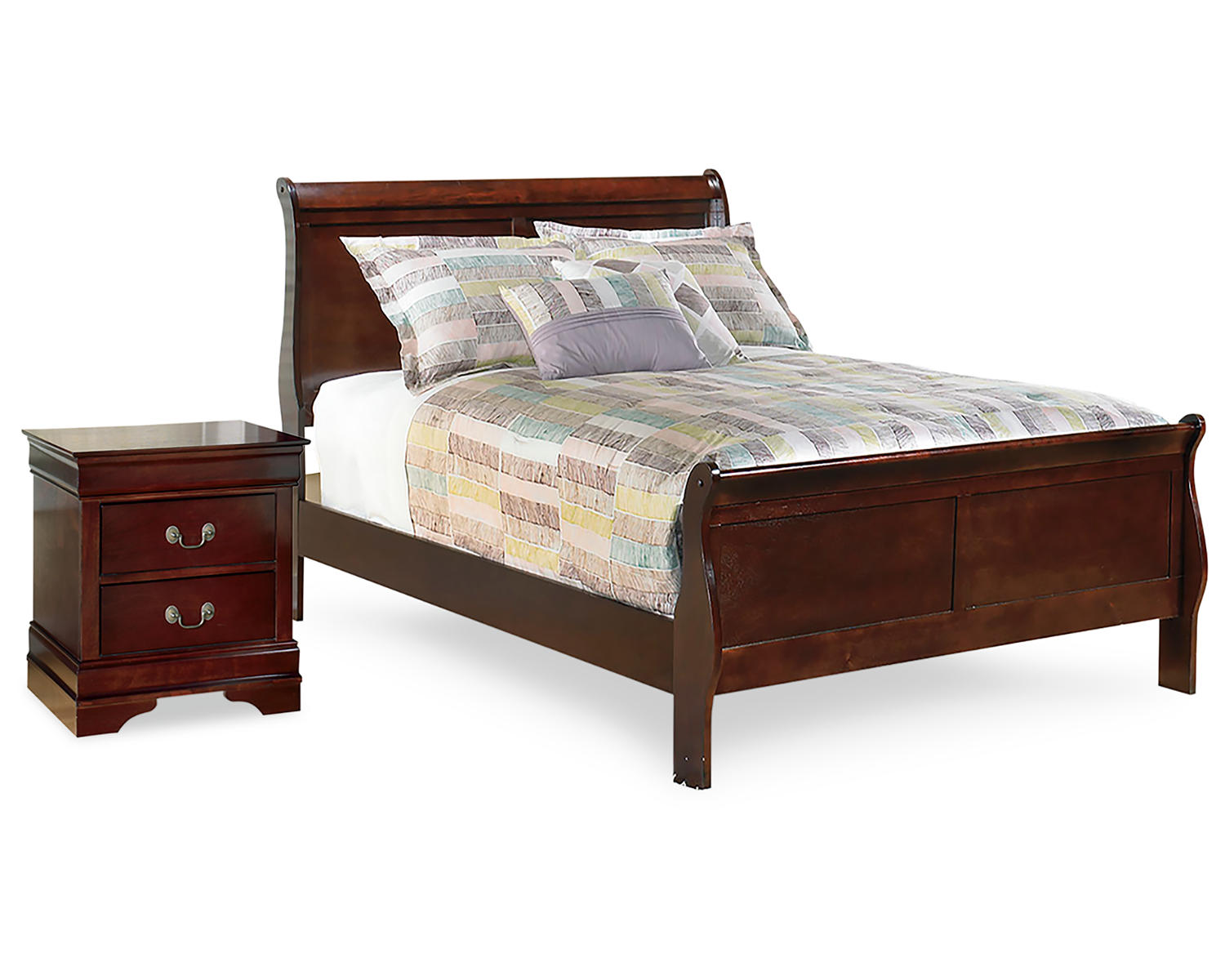 Meet the Alisdair Full Sleigh Bed and Nightstand, a timeless bedroom solution that blends classic silhouette with practical everyday use. This set is ideal for guest rooms or master bedrooms seeking warmth and understated elegance. The reddish brown finish brings rich depth to any décor, while the sleigh bed's curved lines offer a graceful focal point. Practical and durable, it's built to fit your routine night and morning rituals.