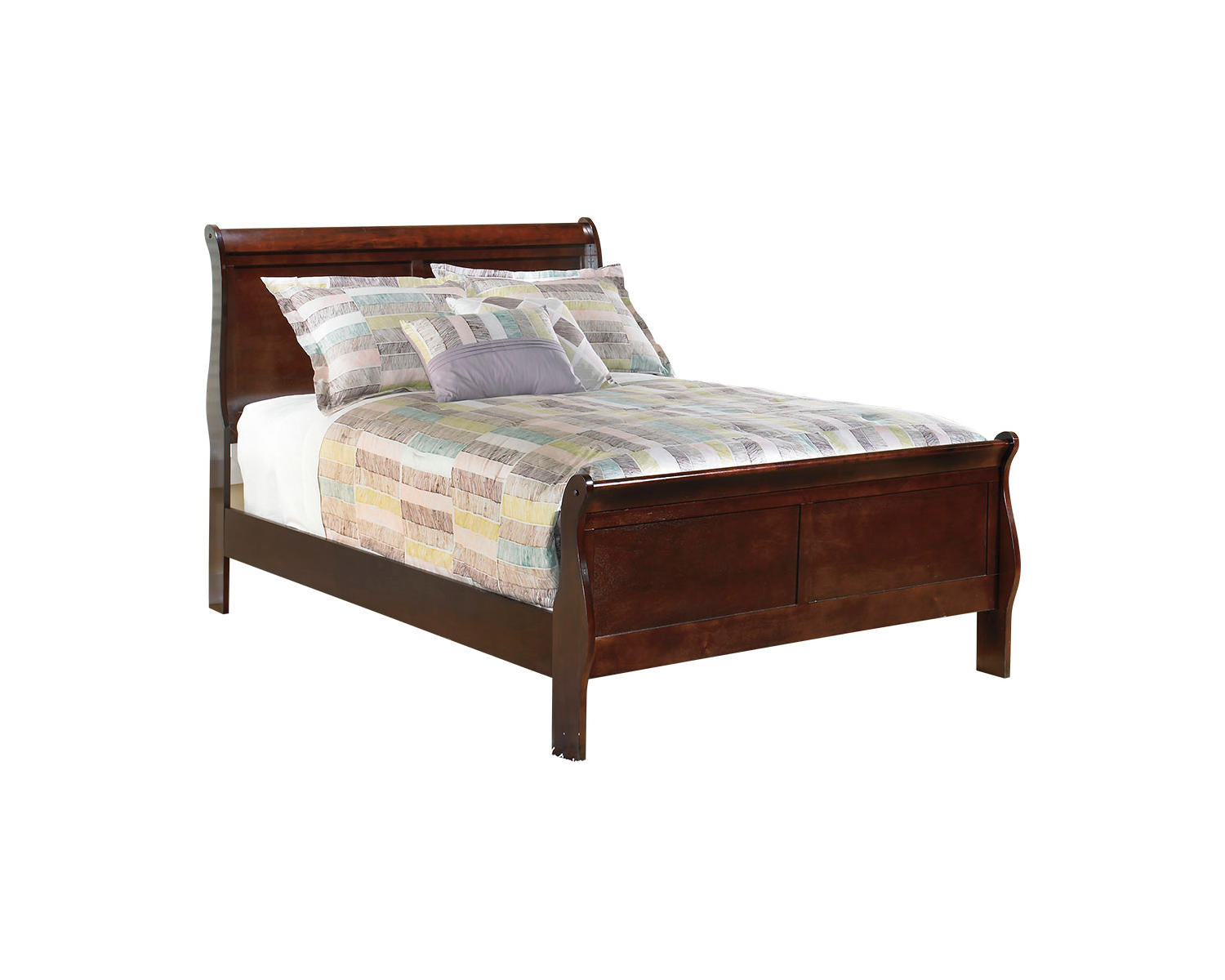 Discover the timeless charm of the Alisdair three-piece set, featuring a Full Sleigh Bed, a matching Dresser, and a Mirror. Finished in a warm reddish brown, this collection brings classic elegance and practical storage to your bedroom—perfect for spaces that value style and function.