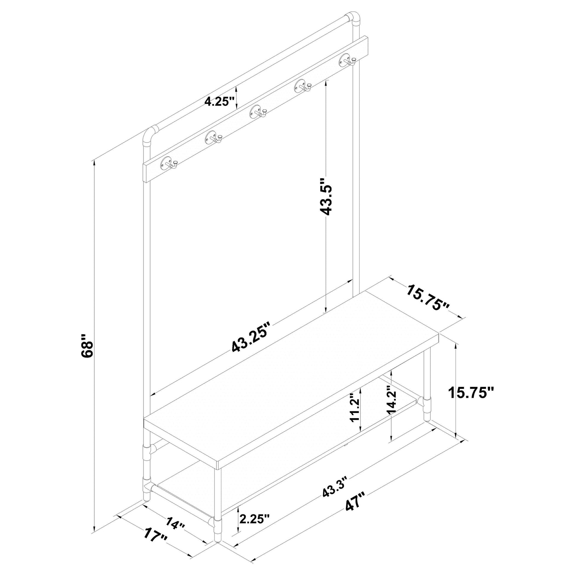 Alise 5 Hook Coat Rack Hall Tree with Shoe Bench – Chestnut