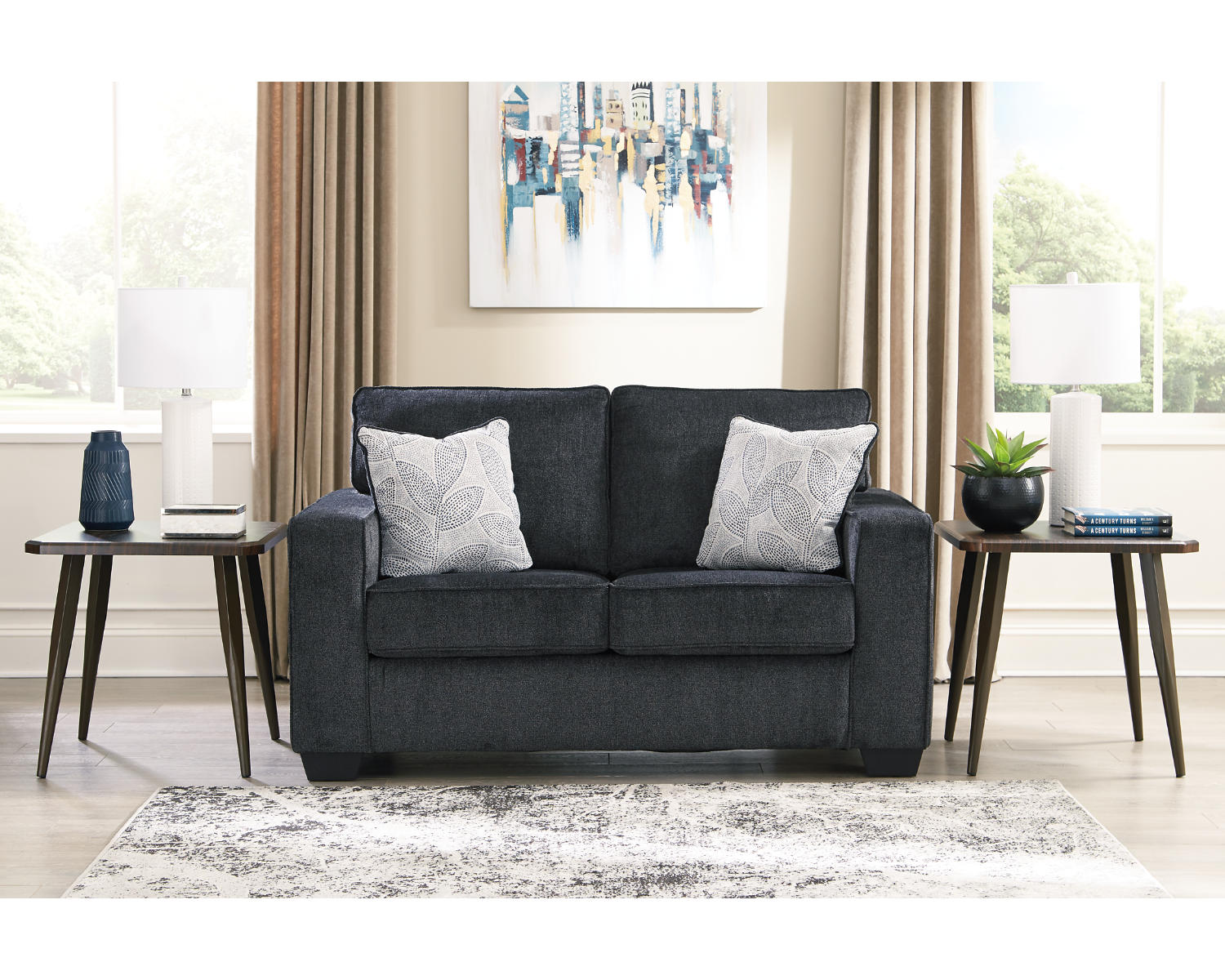 Introducing the Altari Set of 2 Loveseats. This slate-colored pair offers a modern, versatile seating solution for small spaces and everyday lounging. Perfect for living rooms, apartments, or lounge areas that need coordinated, comfortable seating.