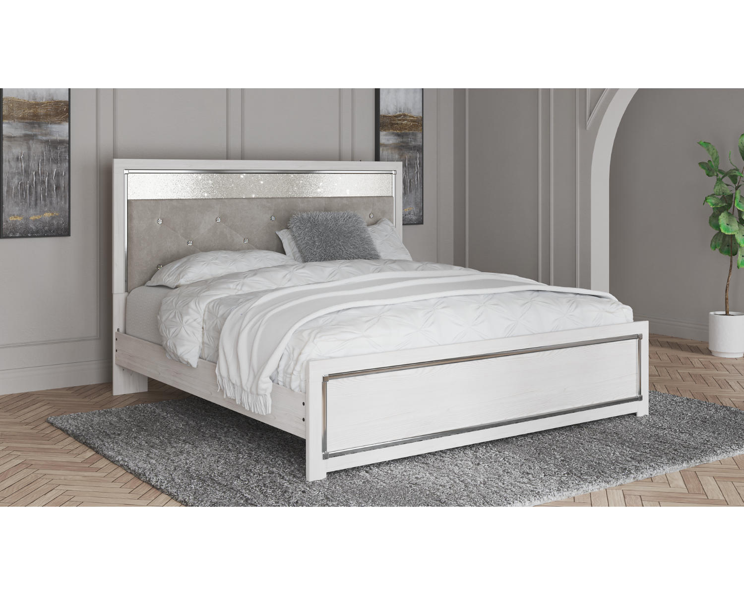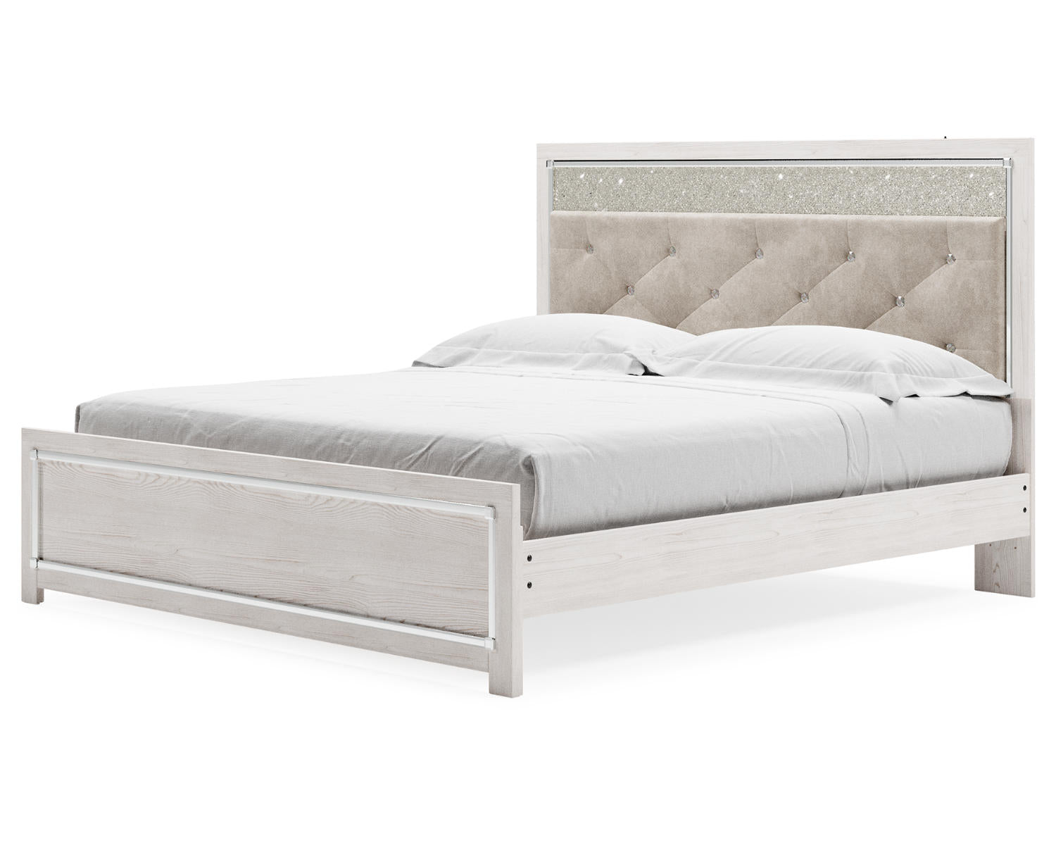 Introducing the Altyra King Panel Bed in white — a clean, versatile centerpiece for modern bedrooms. This king-size bed frame is designed for those who value simple, lasting style and comfortable everyday use. With a timeless panel silhouette and a crisp white finish, it's a polished foundation for your space.