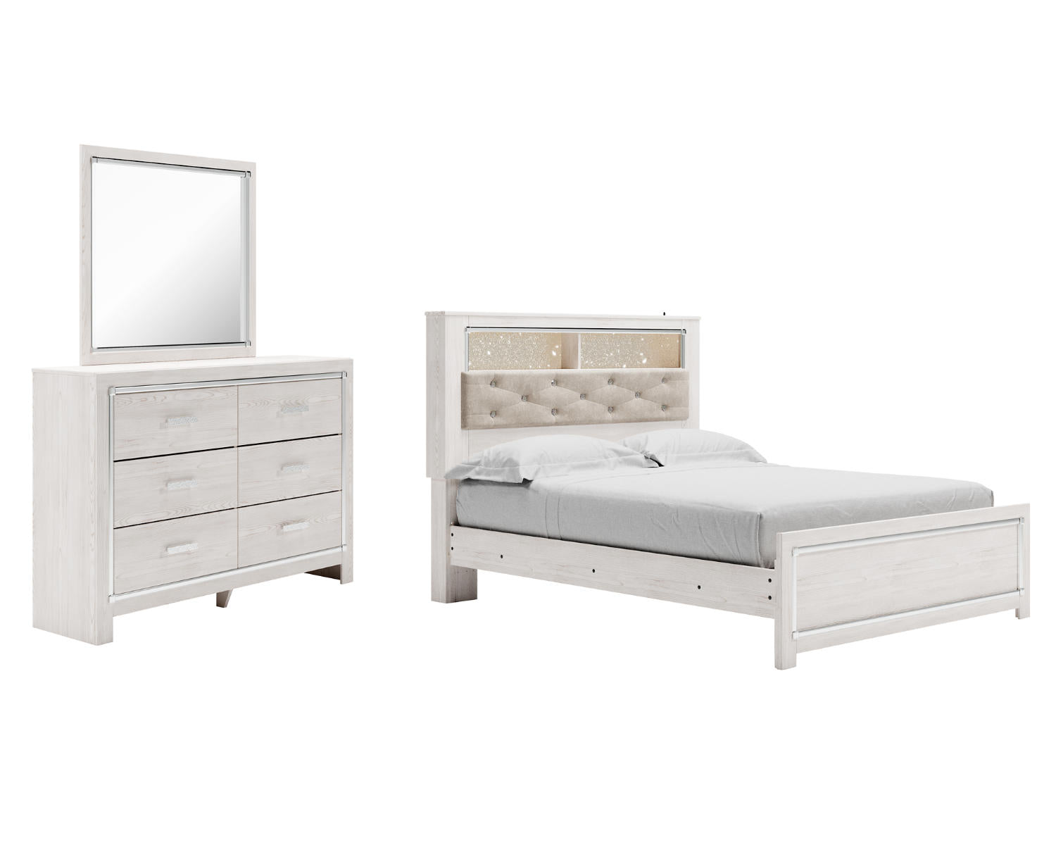 Altyra Queen Panel Bookcase Bed, Dresser and Mirror – White