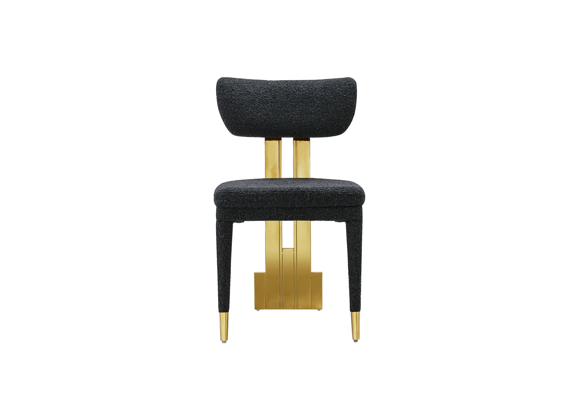 Experience modern sophistication with the Amari Dining Chair— a chic, contemporary seating option ideal for dining rooms and airy kitchens. It features plush white upholstery with a soft, textured finish for a comfortable, inviting look. Elevated by striking gold metal accents on the rear legs and back support, it adds a luxurious touch to any dining setup.