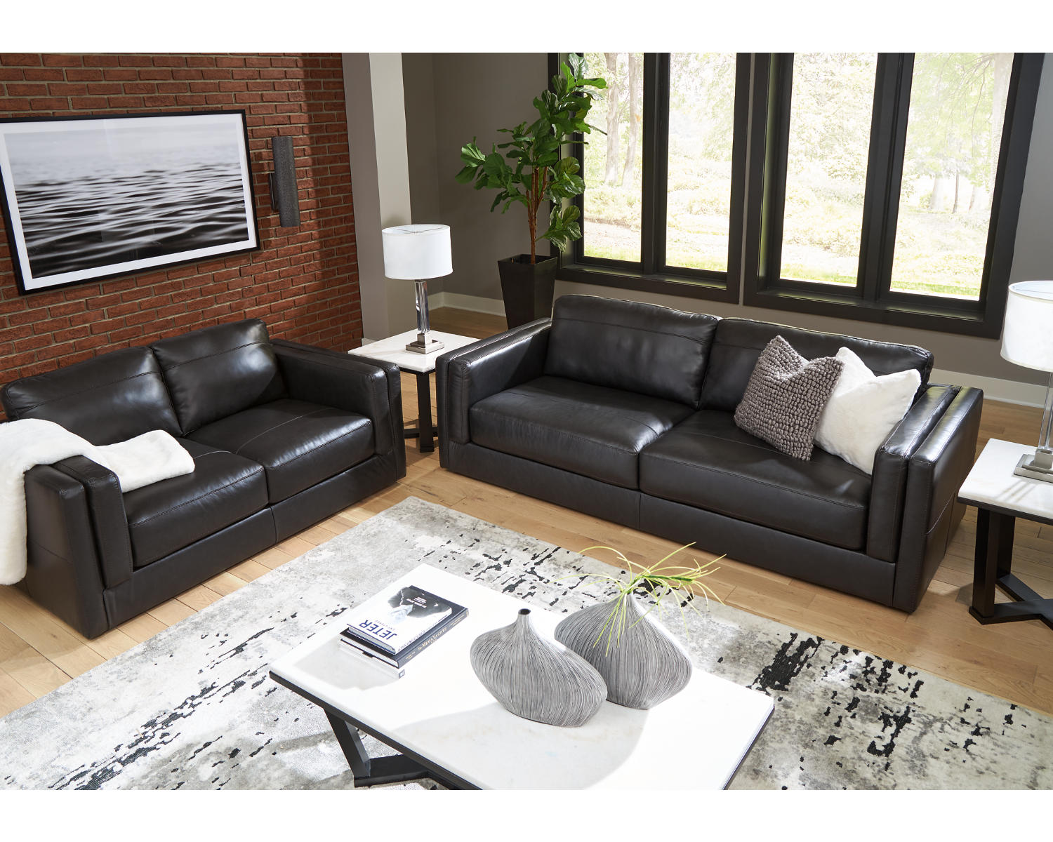- Includes a sofa and a loveseat in a single coordinated Onyx finish