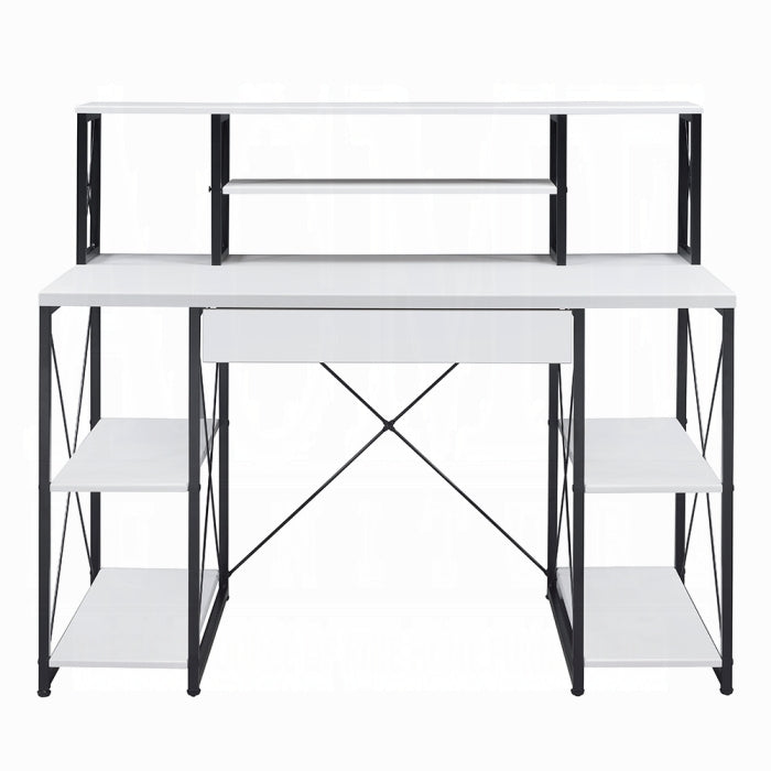 - Smart storage: Open shelving, a hutch, and a drawer offer organized, accessible storage.