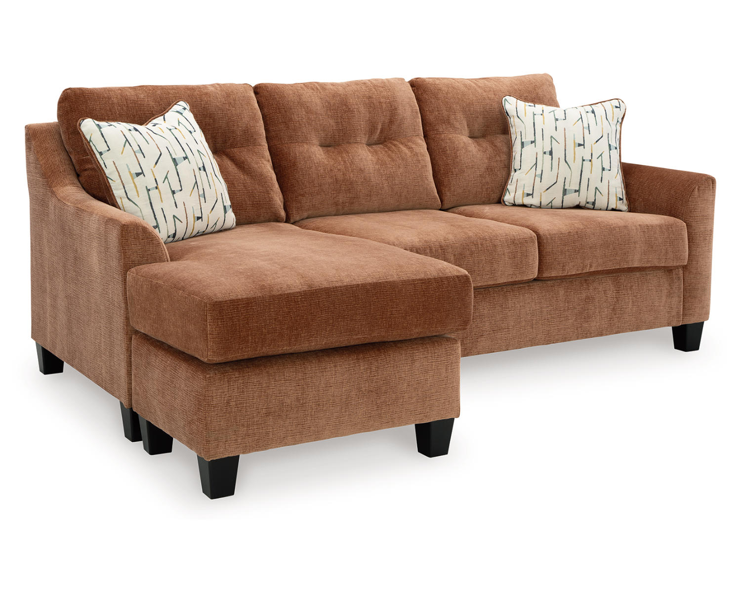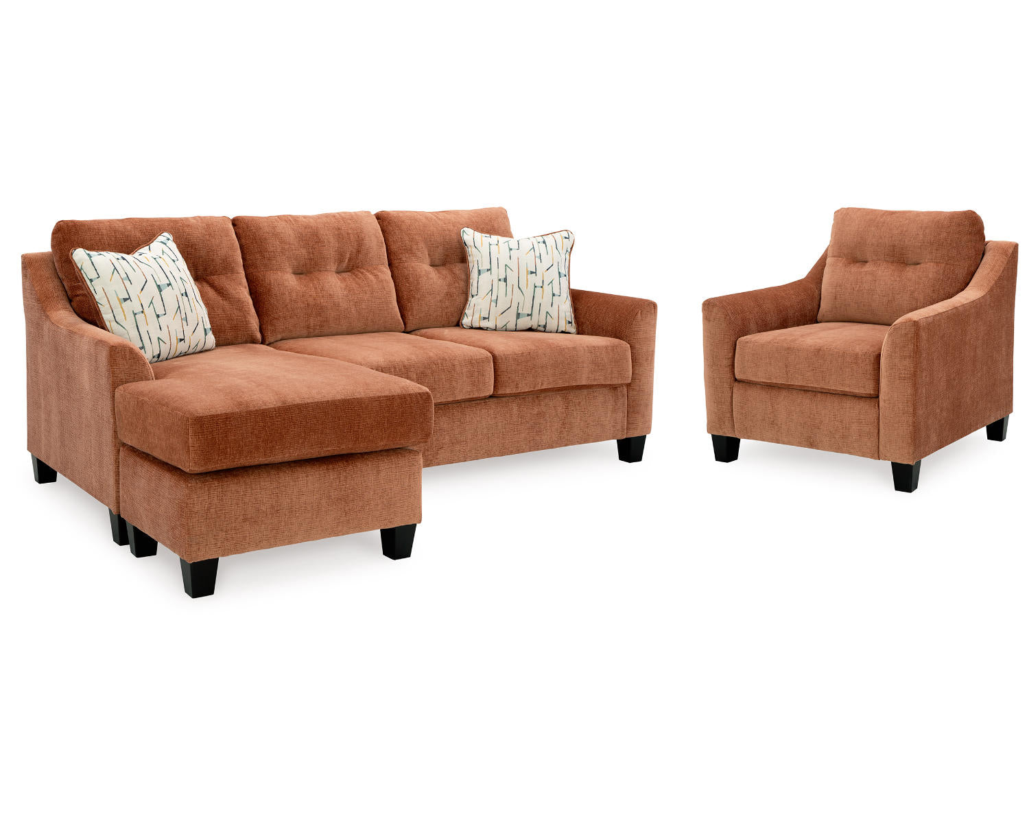 Introducing the Amity Bay Sofa Chaise and Chair, a versatile seating arrangement designed for modern living spaces. This two-piece set combines a welcoming sofa chaise with a coordinating chair, all finished in a warm Clay tone that complements a range of décor styles.