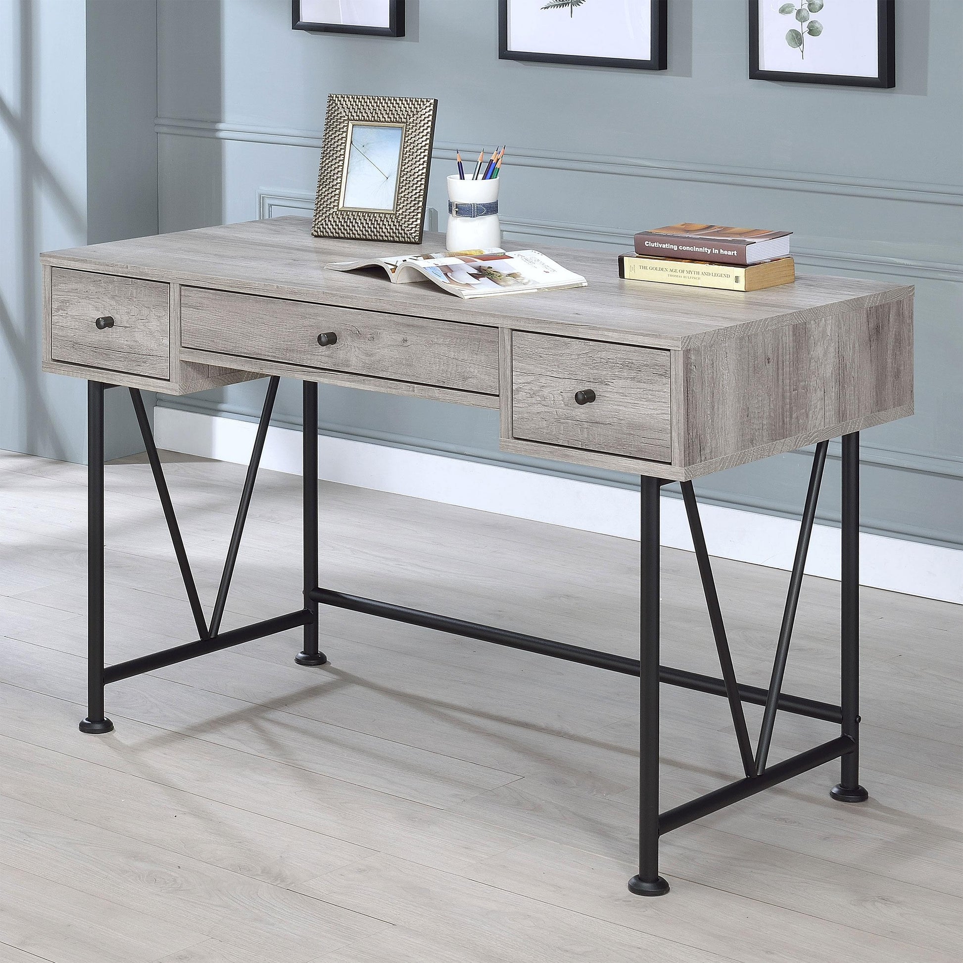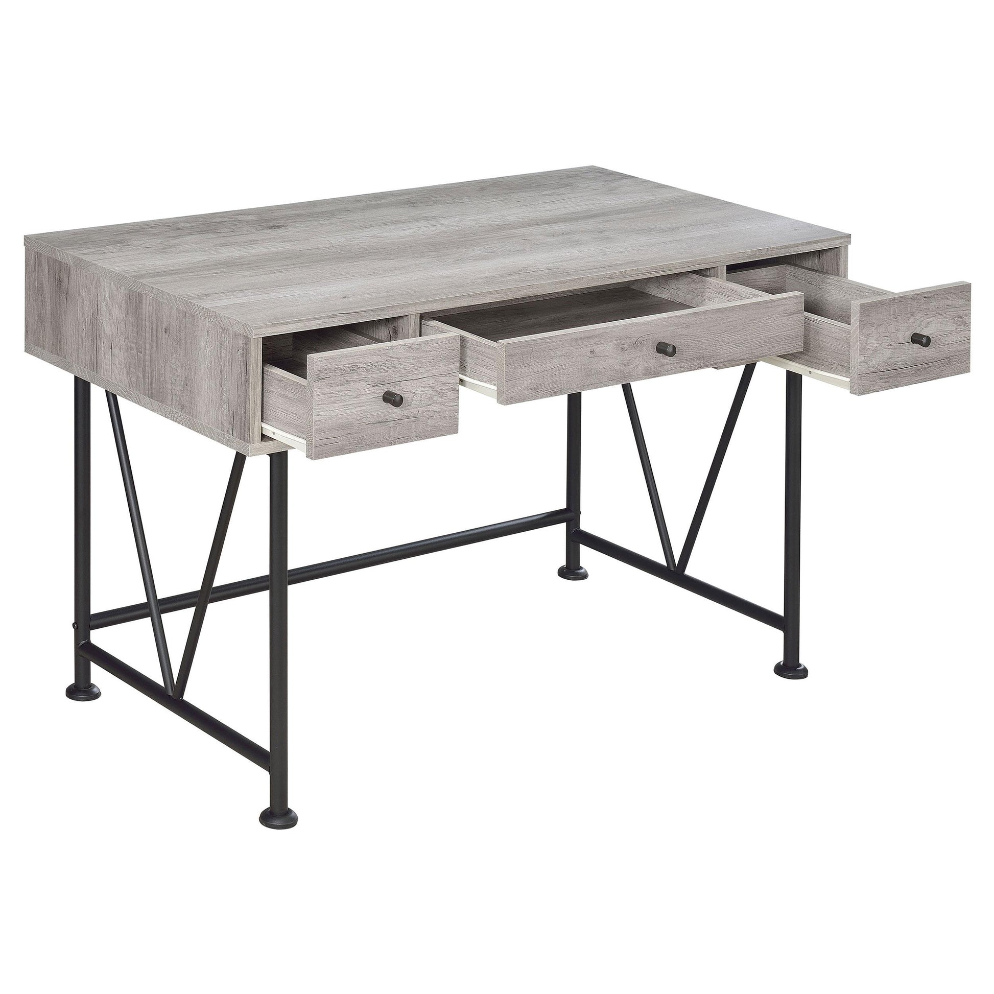 Analiese 3-drawer Writing Desk Grey Driftwood and Black
