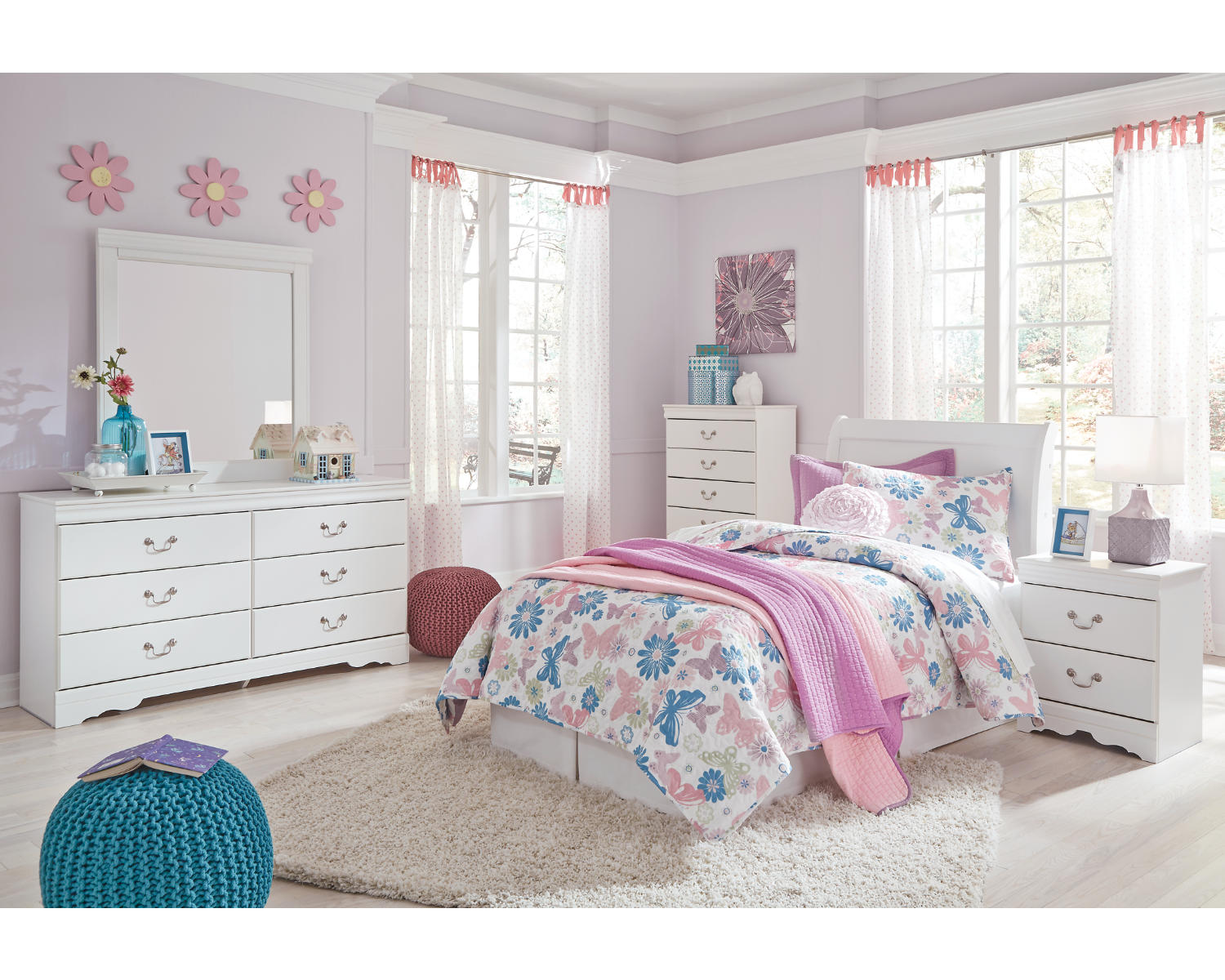 Anarasia Twin Sleigh Headboard, Dresser and Mirror – White