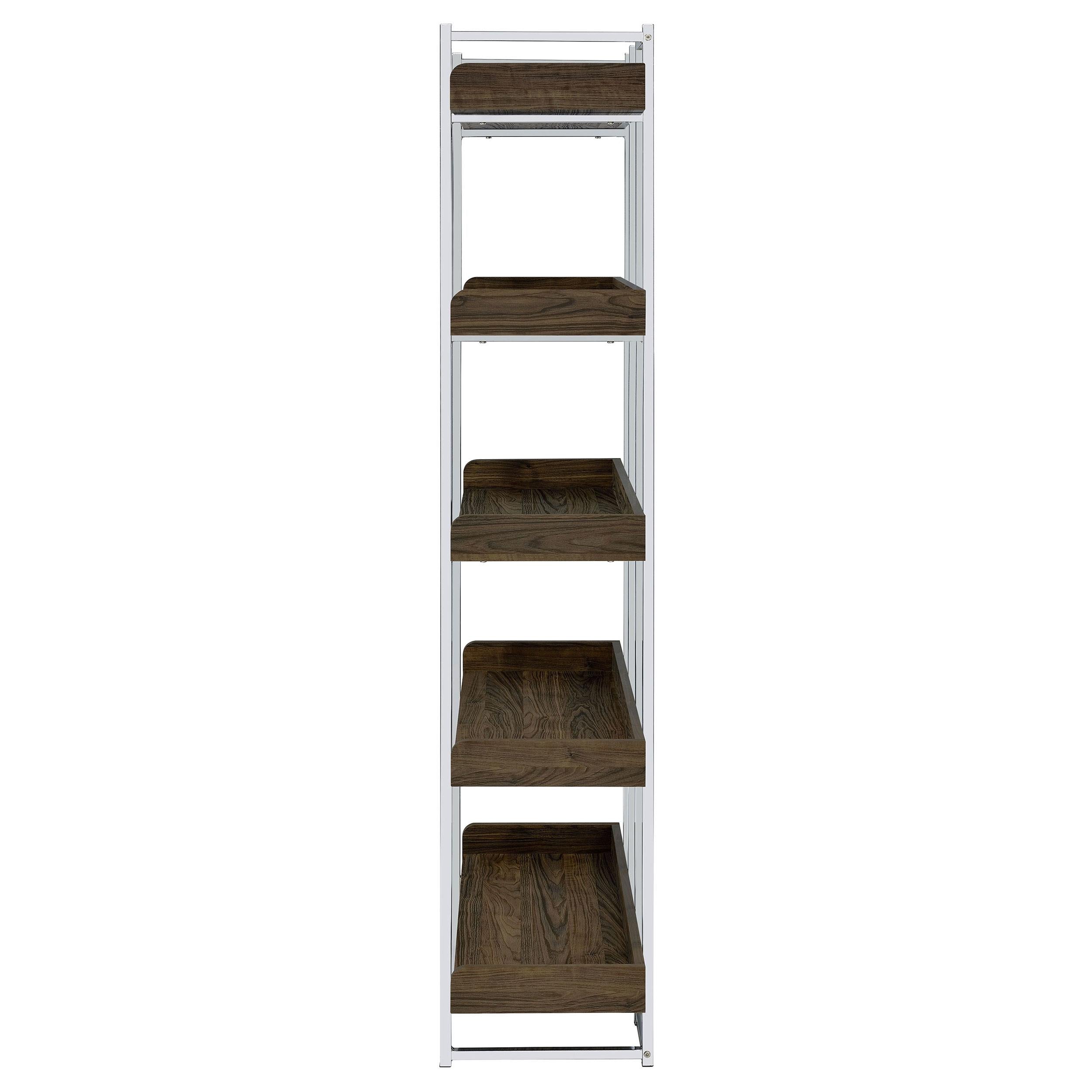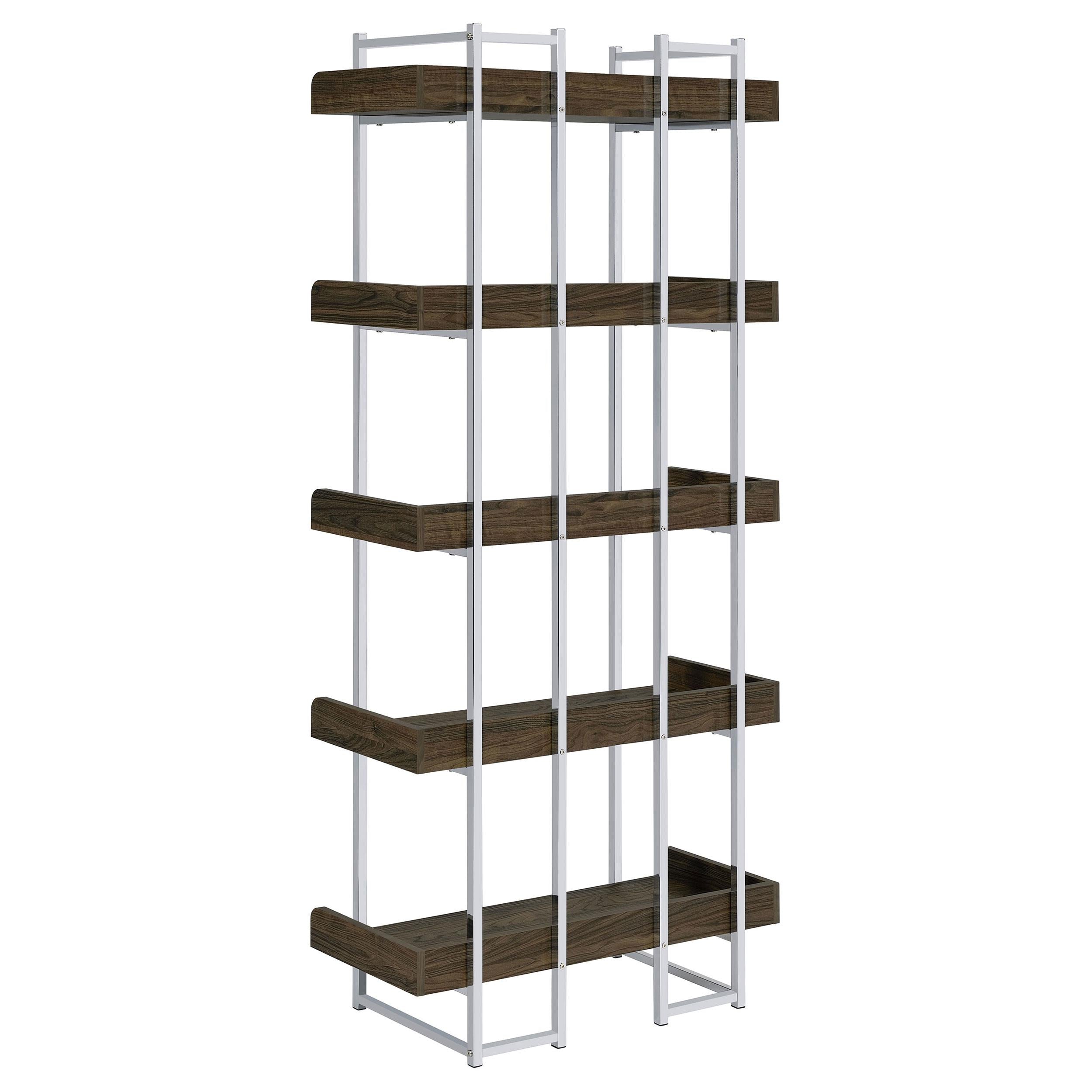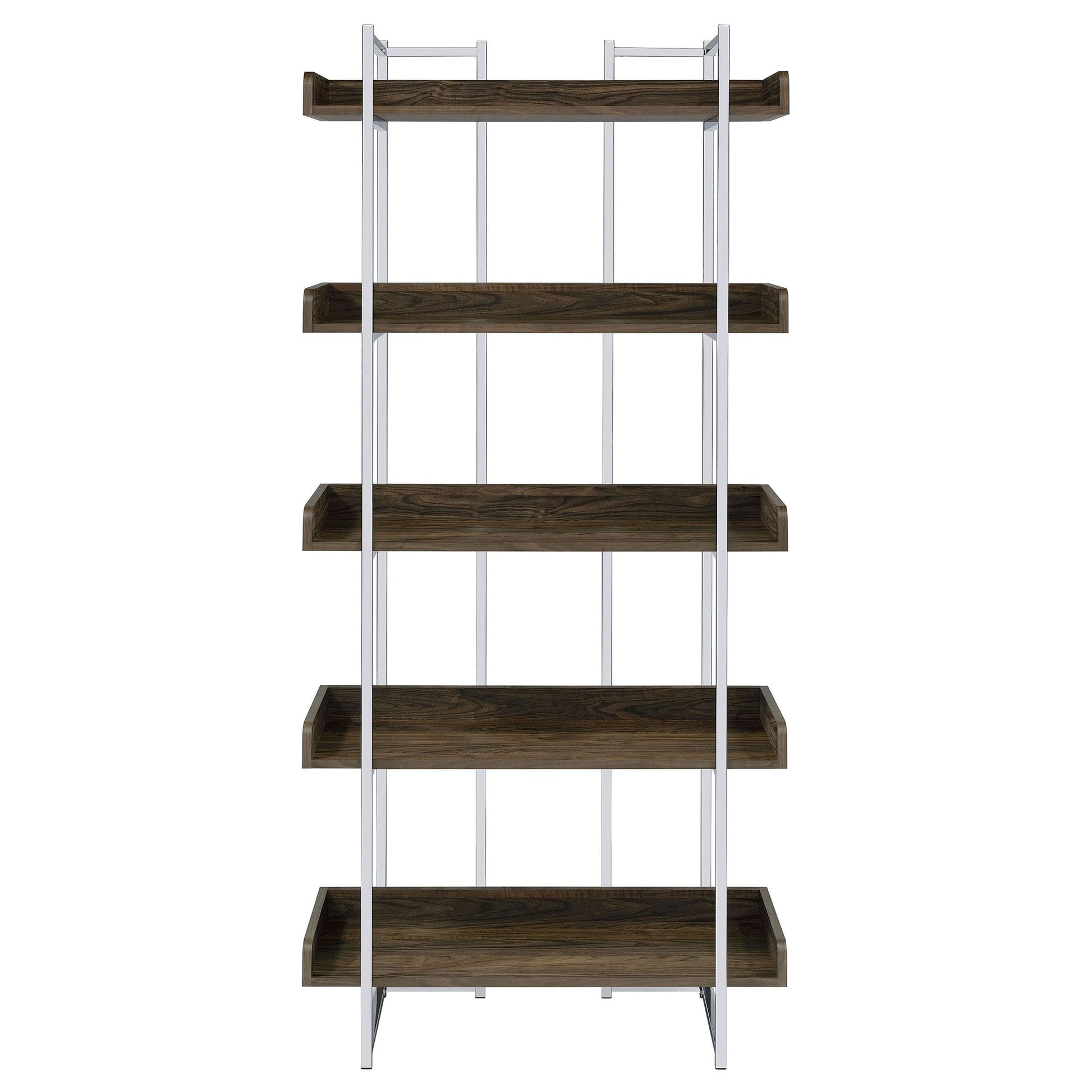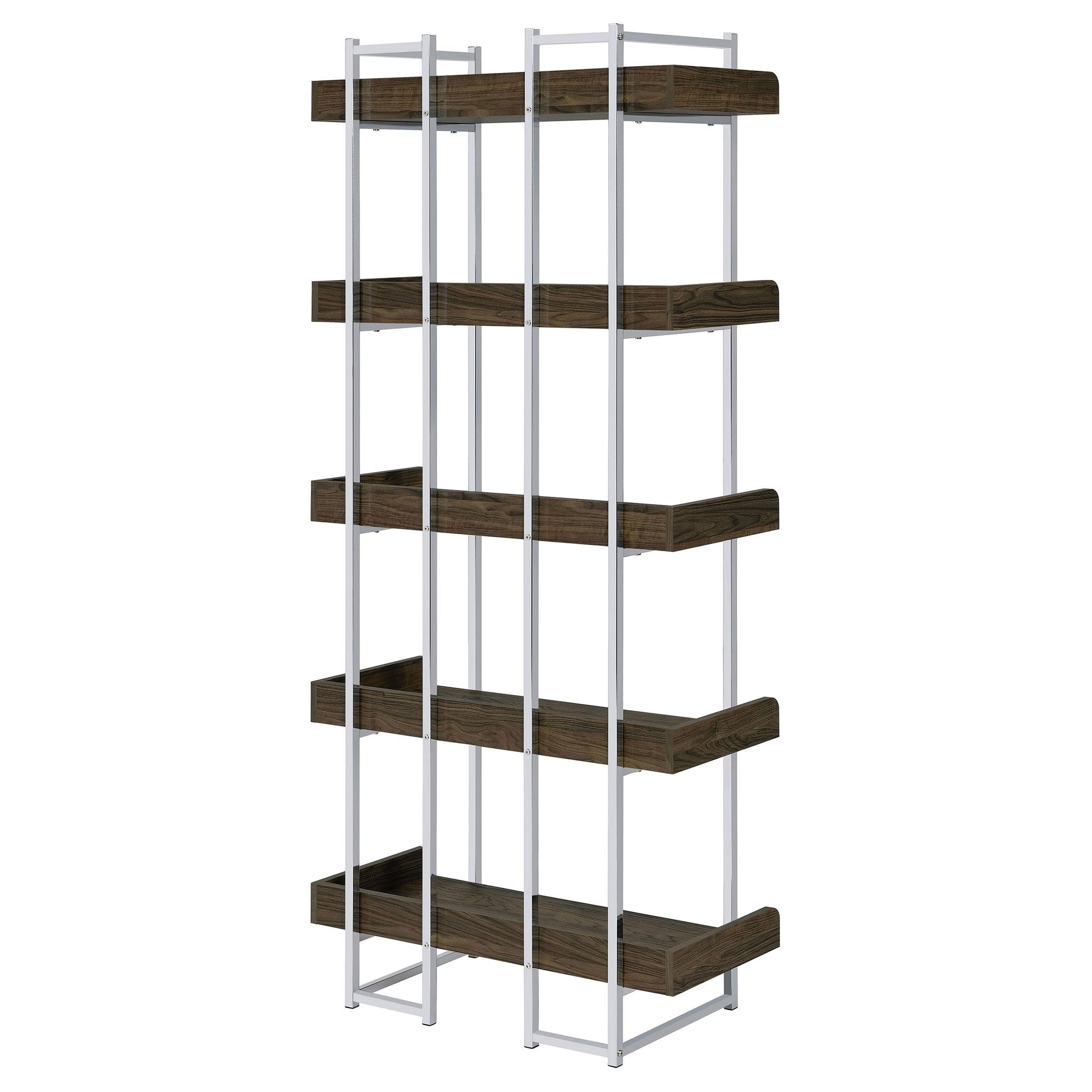Angelica 70-inch 5-shelf Bookshelf Walnut and Chrome