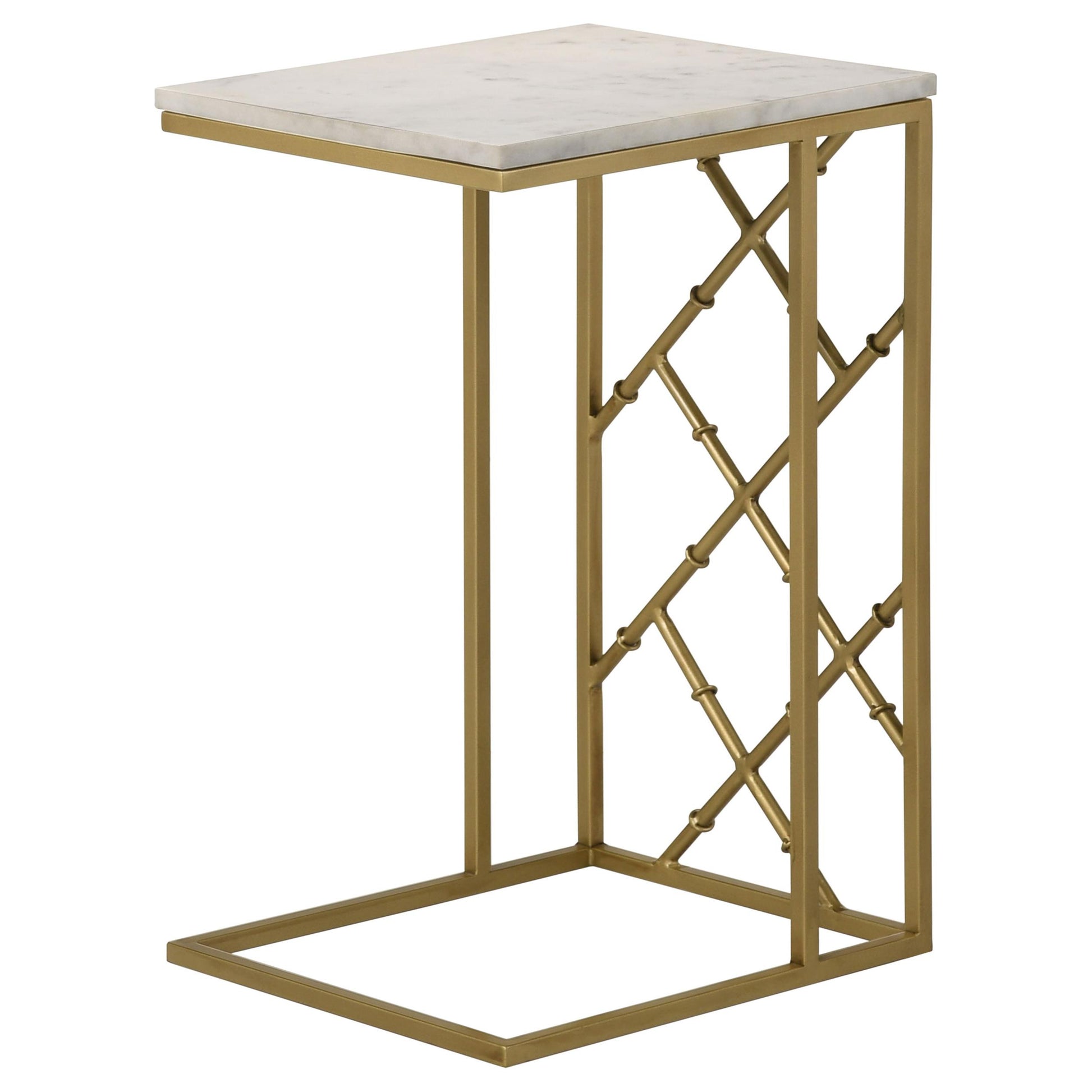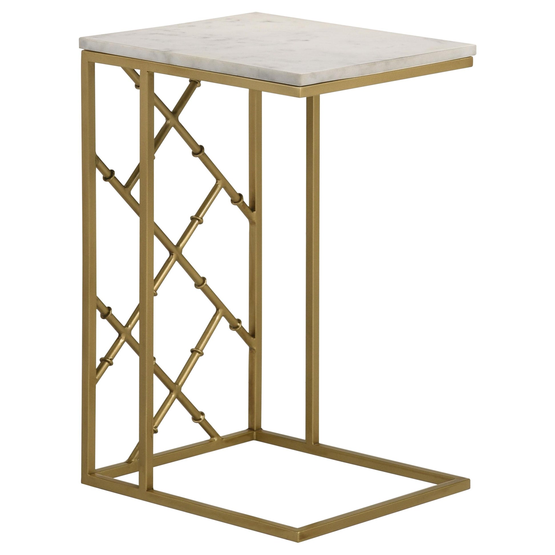 Elevate your living space with the Angeliki Marble Top C-Shape Sofa Side Table in Antique Gold. This compact, versatile accent table is designed to sit beside a sofa or lounge chair, providing a stylish perch for a book, drink, or remote control. Its elegant marble surface paired with a warm antique gold frame blends timeless sophistication with modern functionality.