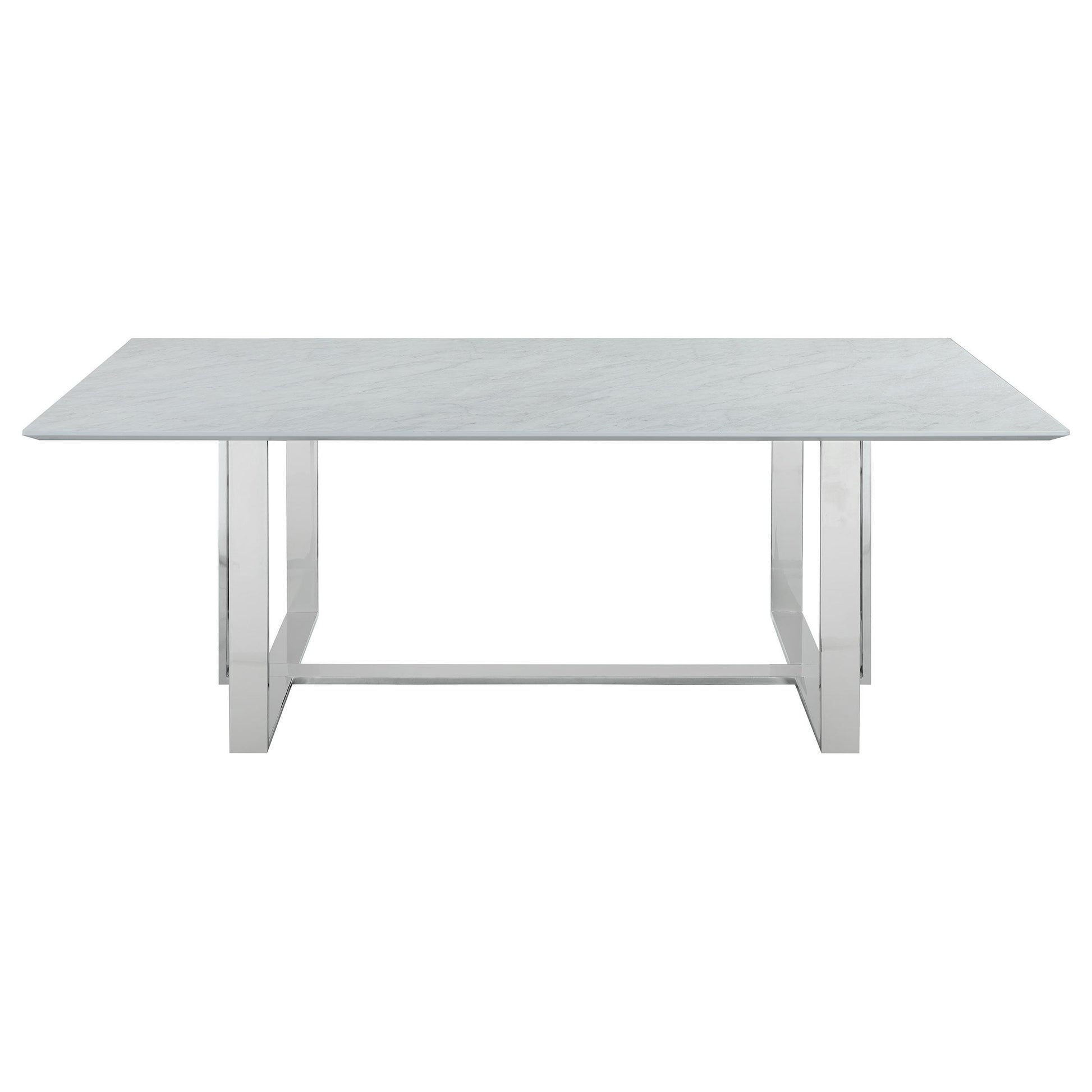 Meet the Annika 5-piece Rectangular Dining Set in White and Chrome — a modern dining solution designed for Contemporary homes. This compact, stylish ensemble is ideal for everyday meals, casual gatherings, and dining spaces that value clean lines and effortless upkeep.