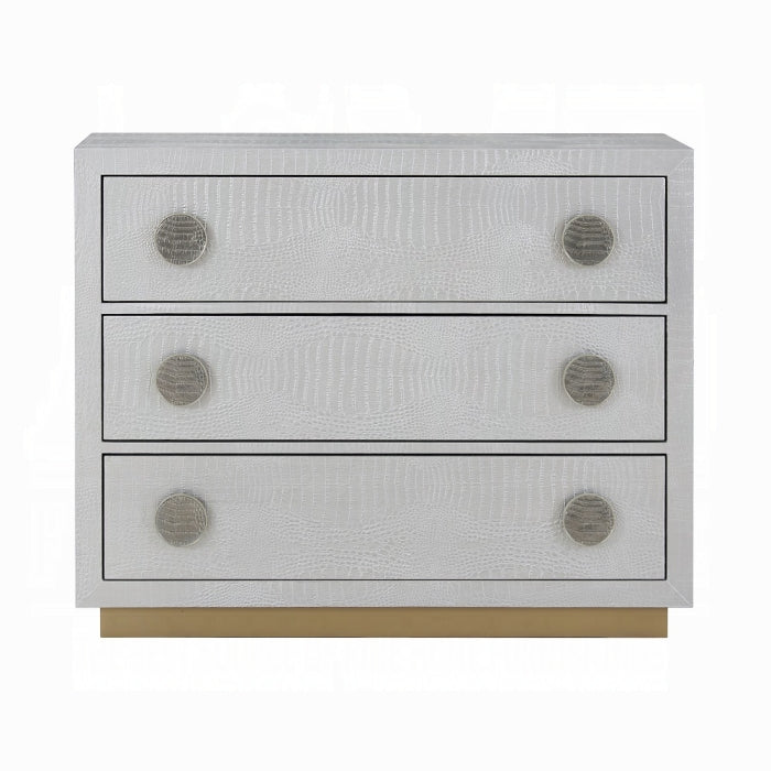 - Texture: Textured faux crocodile case and drawer fronts for tactile depth
