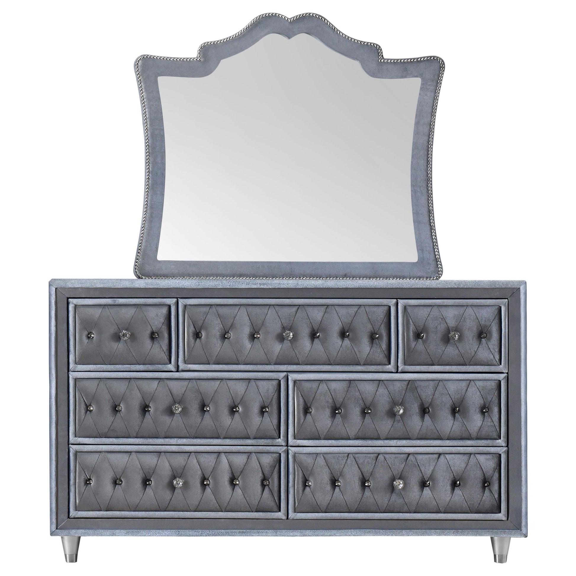 Antonella 7-drawer Upholstered Dresser with Mirror Grey