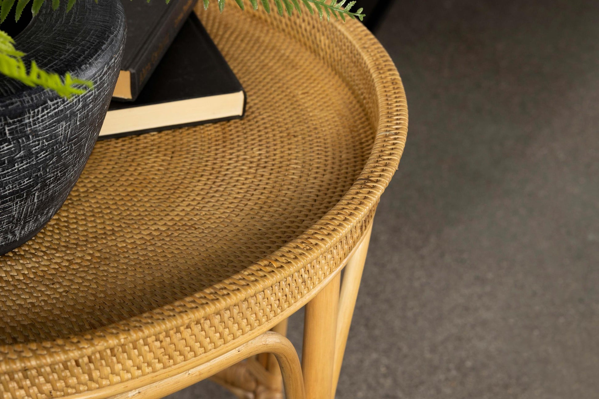 Antonio Round Rattan Tray Top Accent Side Table – Natural