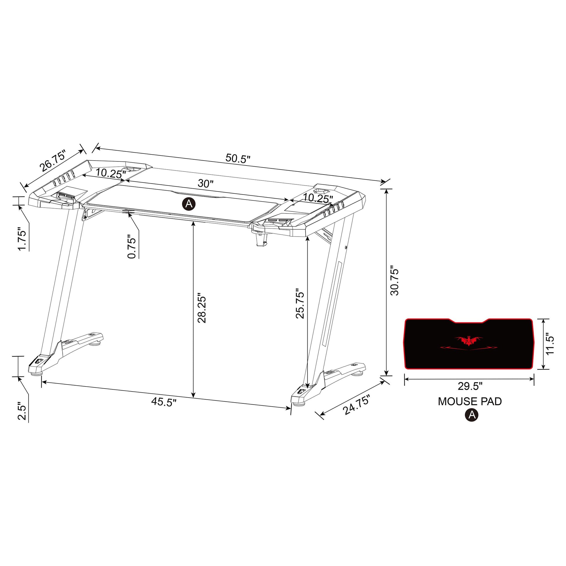 Ardsley 51-Inch Computer Gaming Desk with RGB Lighting — Black
