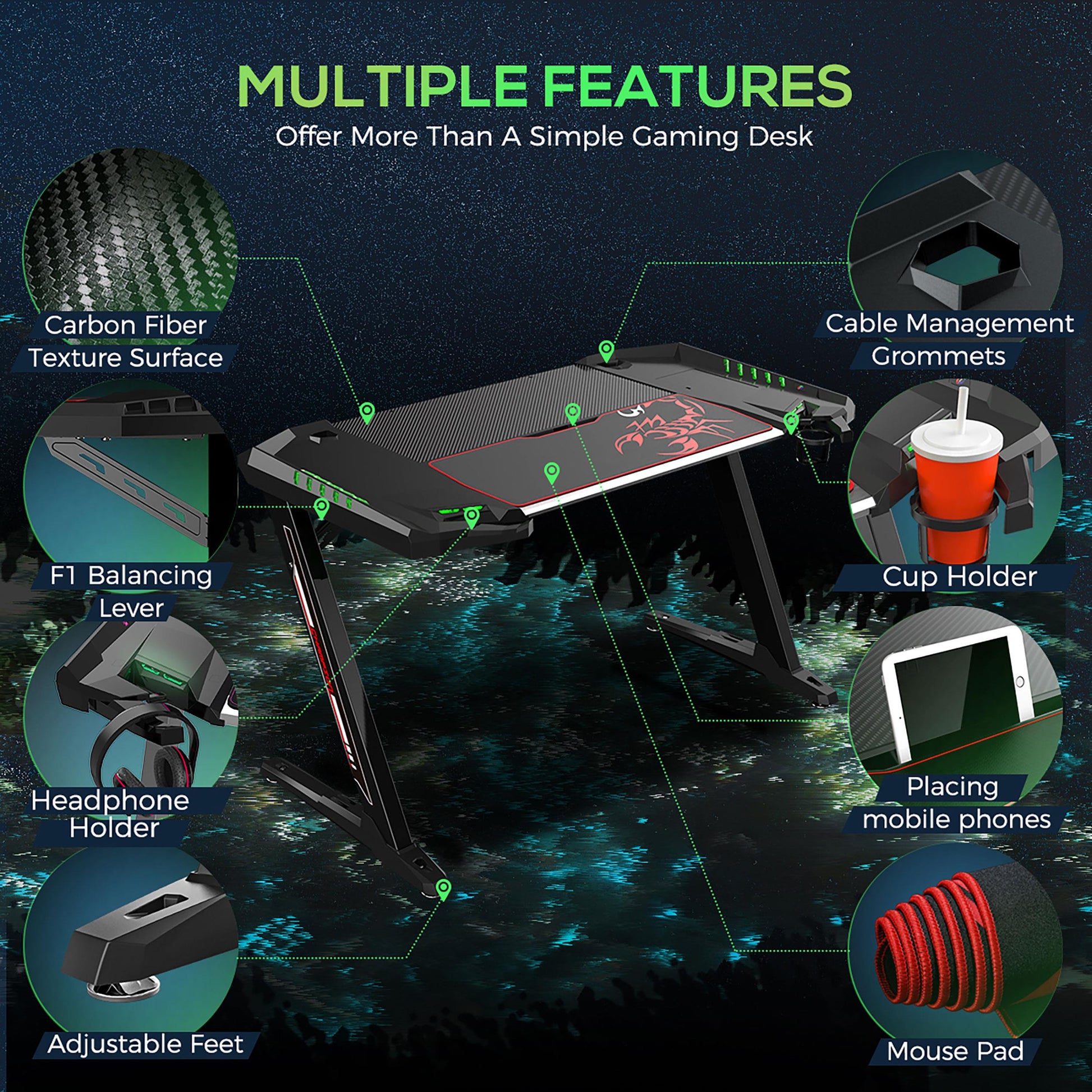 - Specifically built as a computer gaming desk for focused, comfortable gameplay