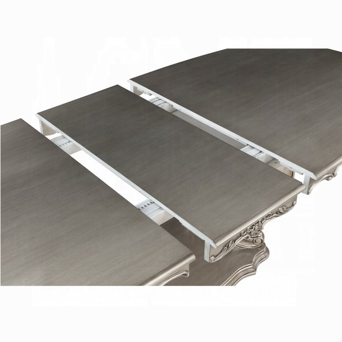 Introducing our Ariadne dining table that captivates with intricate scrollwork and a luxurious antique platinum finish. It’s designed for dining rooms that value timeless elegance and for gatherings with family and friends. The beautifully crafted pedestal base makes a grand statement, anchoring your space with sophistication and function.
