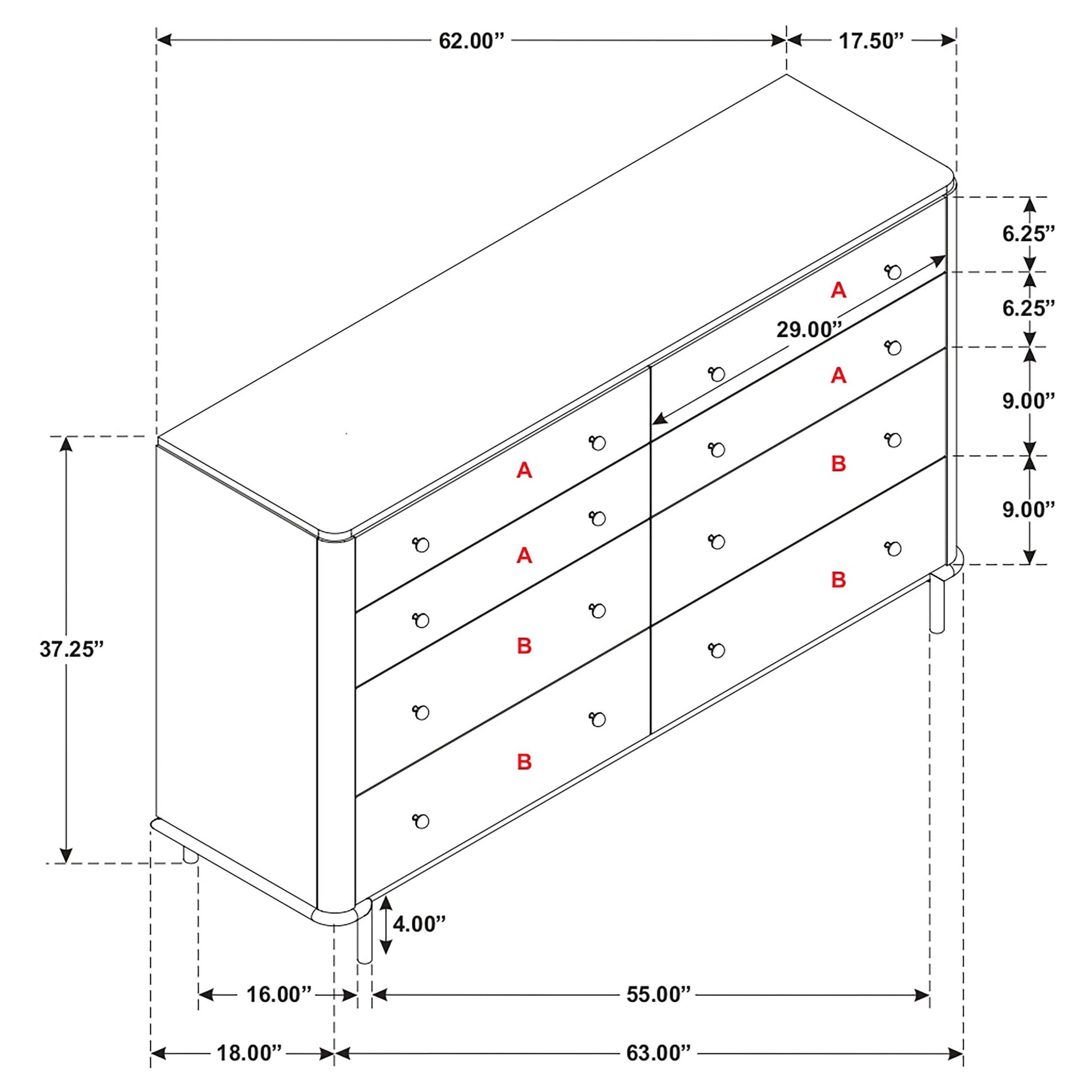 Designed for durability and everyday practicality, this dresser keeps wardrobes and essentials neatly organized, reducing clutter and improving room flow. Its eight-drawer configuration delivers ample storage without sacrificing style, offering strong value compared with other dressers of similar size.