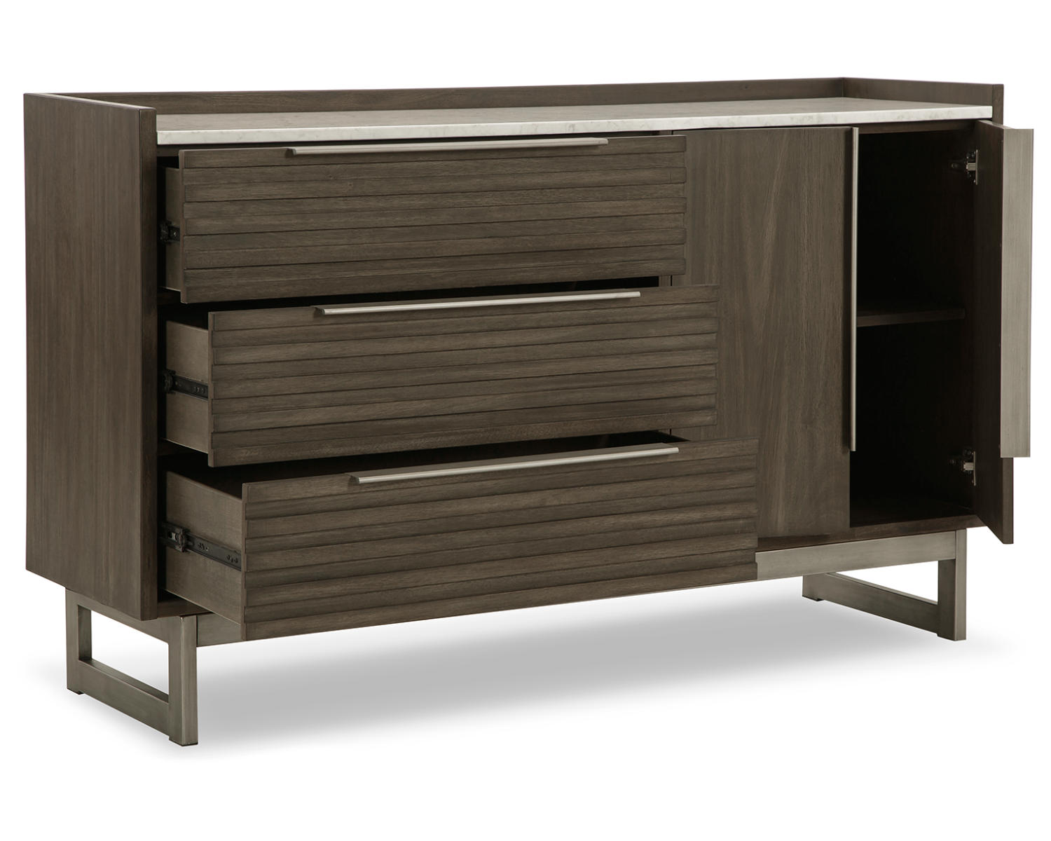 The Arkenton Dresser brings simple, functional storage to your bedroom. In a graceful grayish brown and white two-tone finish, it blends modern style with everyday practicality. This piece is designed for anyone who values organization and a clean, timeless aesthetic.