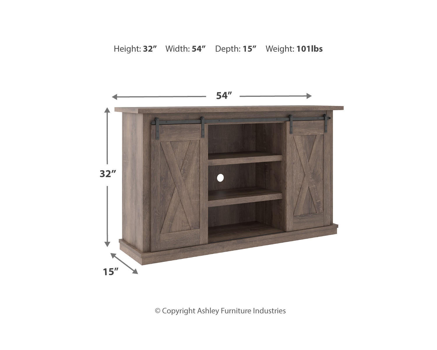Meet the Arlenbry 54" TV Stand, a medium-sized gray media console designed to streamline your entertainment setup with a clean, modern profile. This stand is ideal for living rooms, bedrooms, or dens, offering practical function and understated style that complements a wide range of decor.