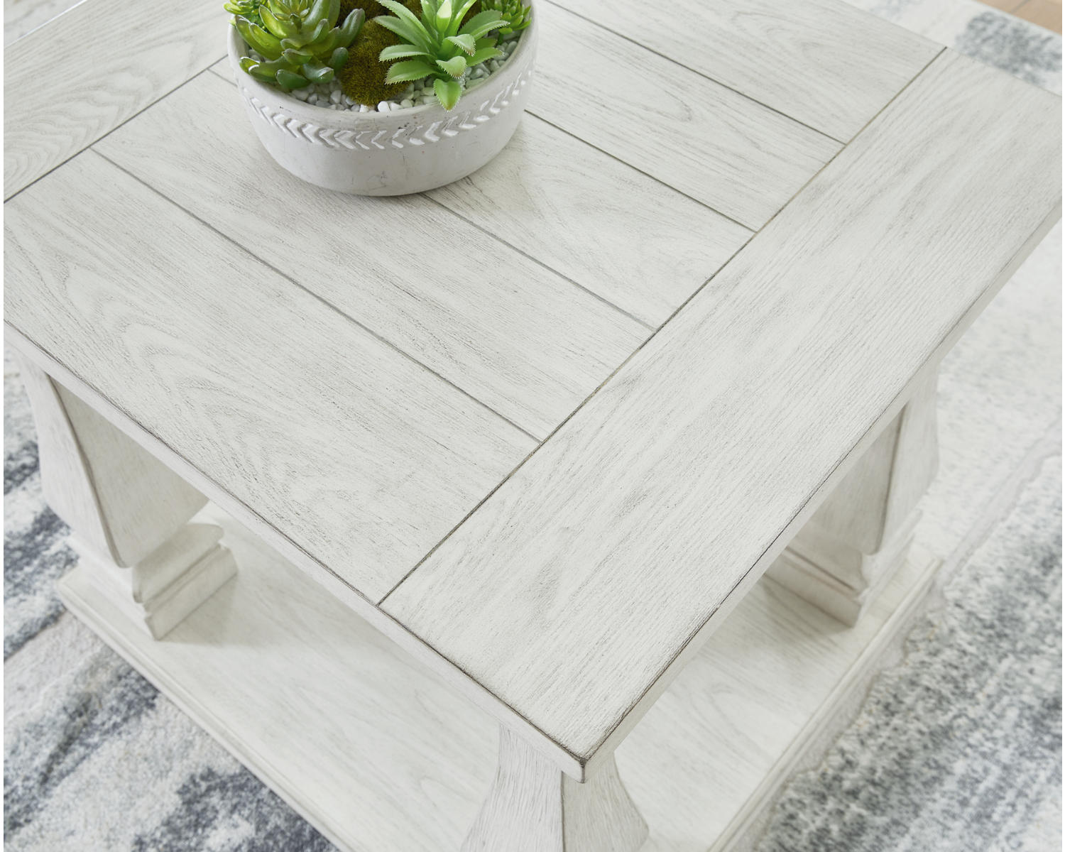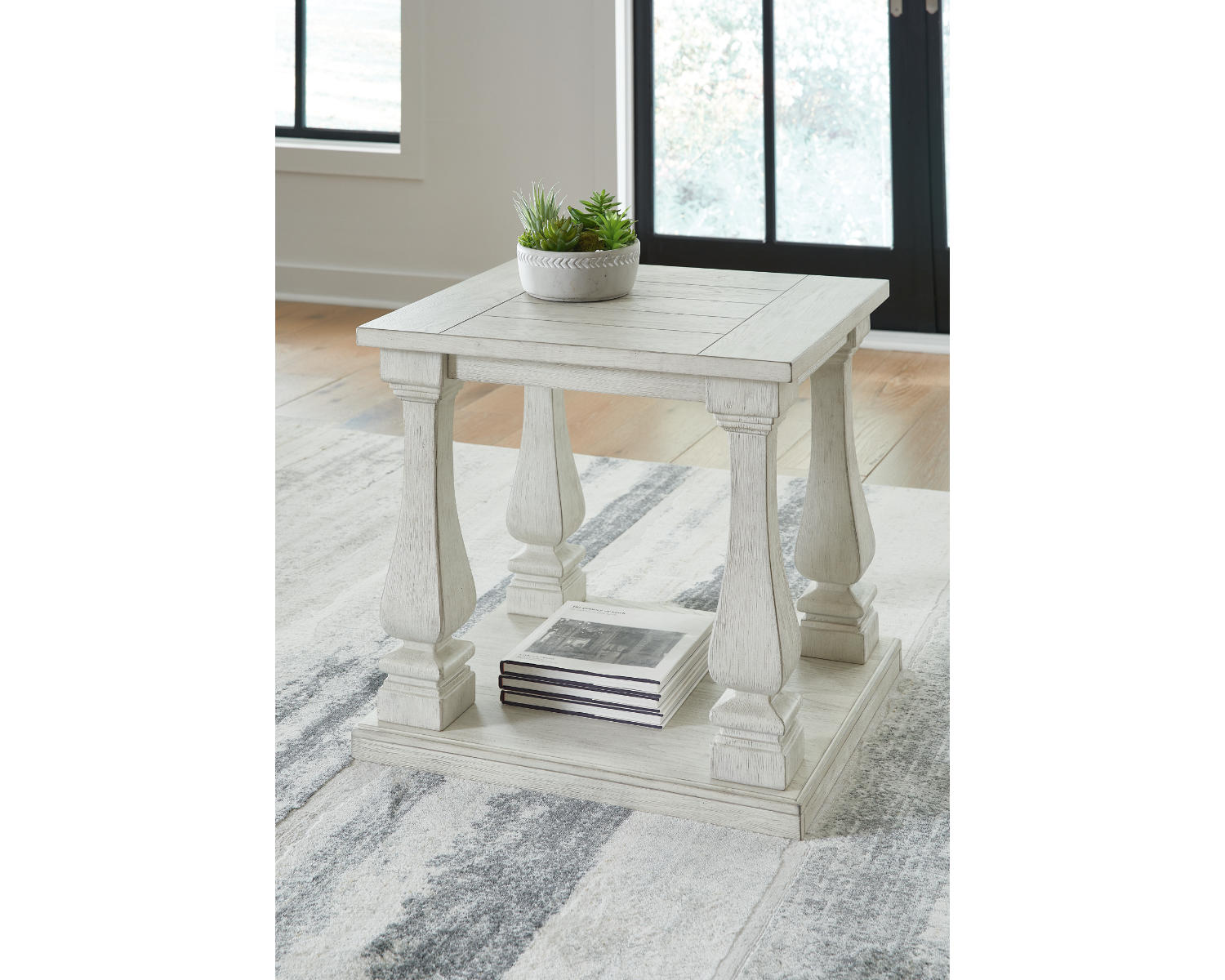The Arlendyne End Table is a versatile rectangular end table finished in antique white. It brings classic charm to living rooms, bedrooms, or entryways with clean lines and understated elegance, offering practical surface space for lamps, books, or decor.