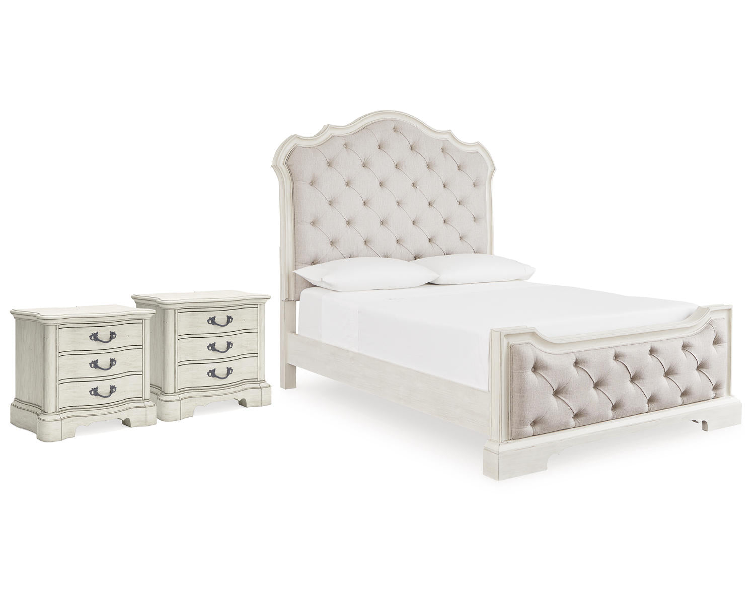 Built with durability in mind, the Arlendyne set is designed to endure everyday use while maintaining its refined appearance. The antique white finish helps hide minor wear and showcases a timeless aesthetic that remains relevant across seasons. Combined with competitive pricing, this bed and nightstands offer strong value compared with similar upholstered bedroom sets.