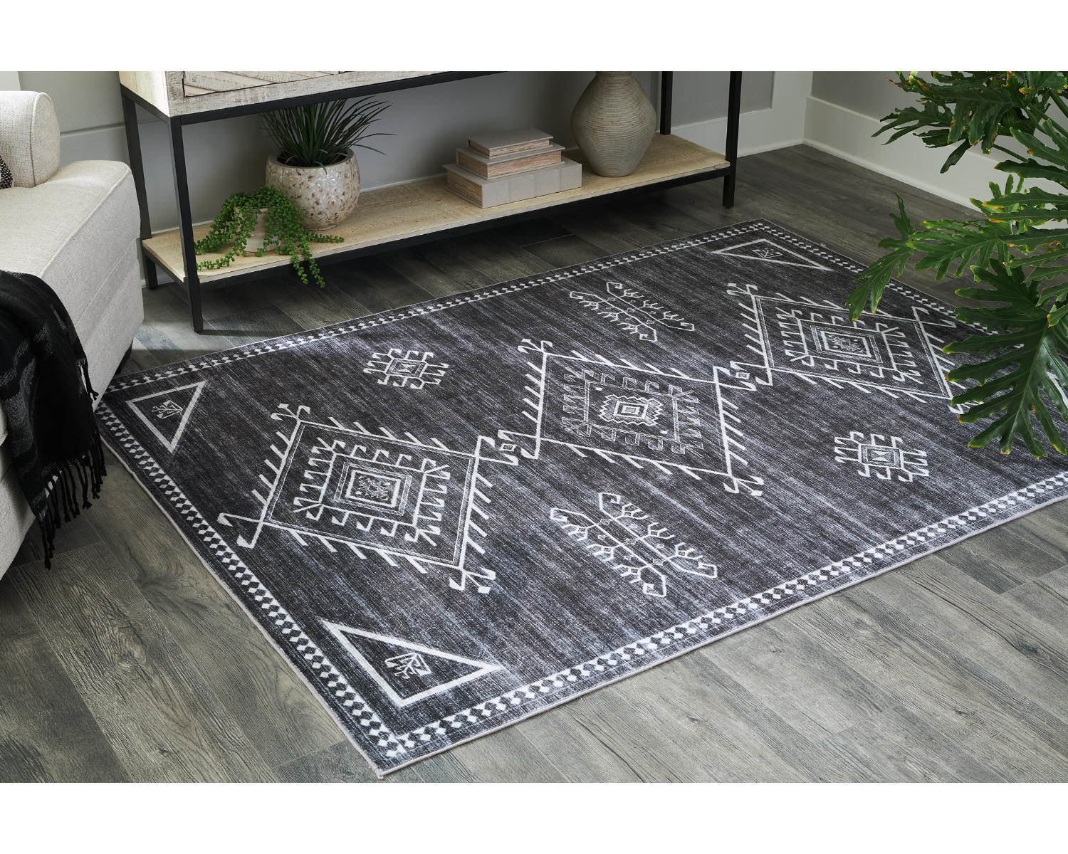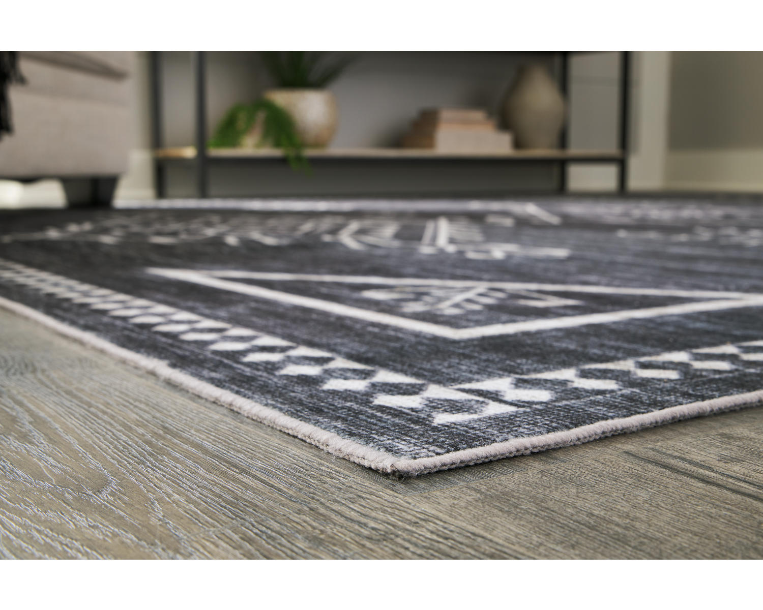 The Arloman 5' x 7' Washable Rug is a versatile medium rug designed for busy homes. Its neutral black, cream, and gray palette makes it easy to blend with existing decor, while its washable construction keeps maintenance simple. Ideal for living rooms, bedrooms, or entryways, it adds comfort without sacrificing practicality.