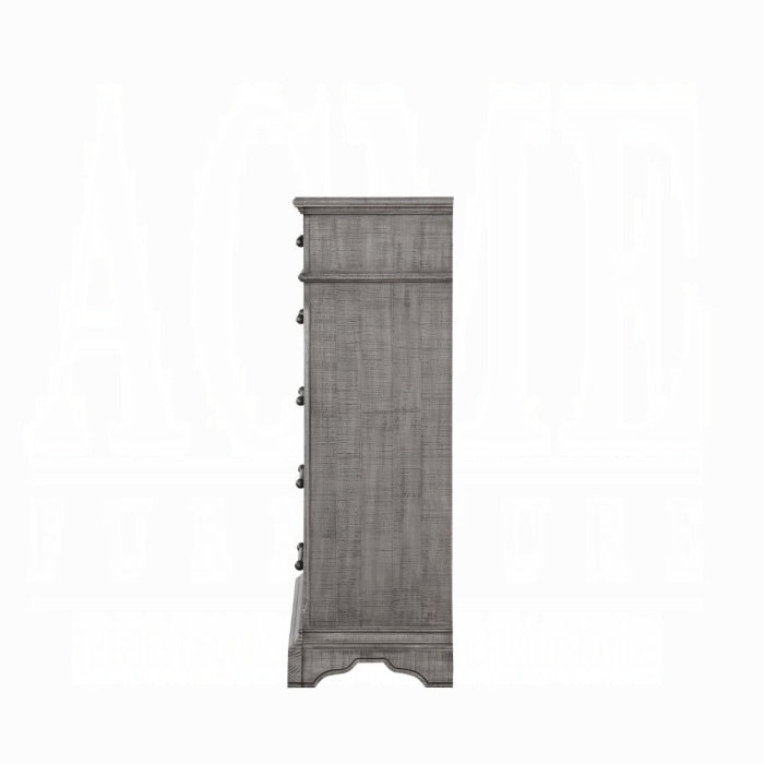 The Artesia chest provides a commanding presence in any room. This contemporary chest, finished in salvaged natural wood, features five storage drawers and raised, scrolled motifs that elevate its artisanal charm. This fashionable chest will fuse with the surrounding decor and transform a room, adding practical storage with timeless style.