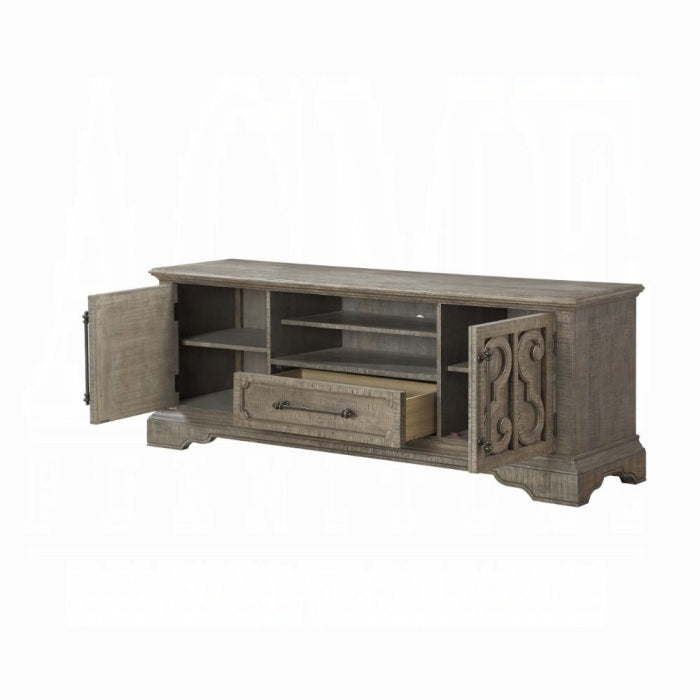 Introducing the Artesia TV Stand—an exclusive design that blends romance with functionality. Crafted for those who appreciate timeless appeal, this piece elevates living spaces with its refined silhouette. Decorated with oversized, scrolled motifs in a salvaged natural finish, it brings sophistication to your living room and gracefully complements a variety of decor styles.