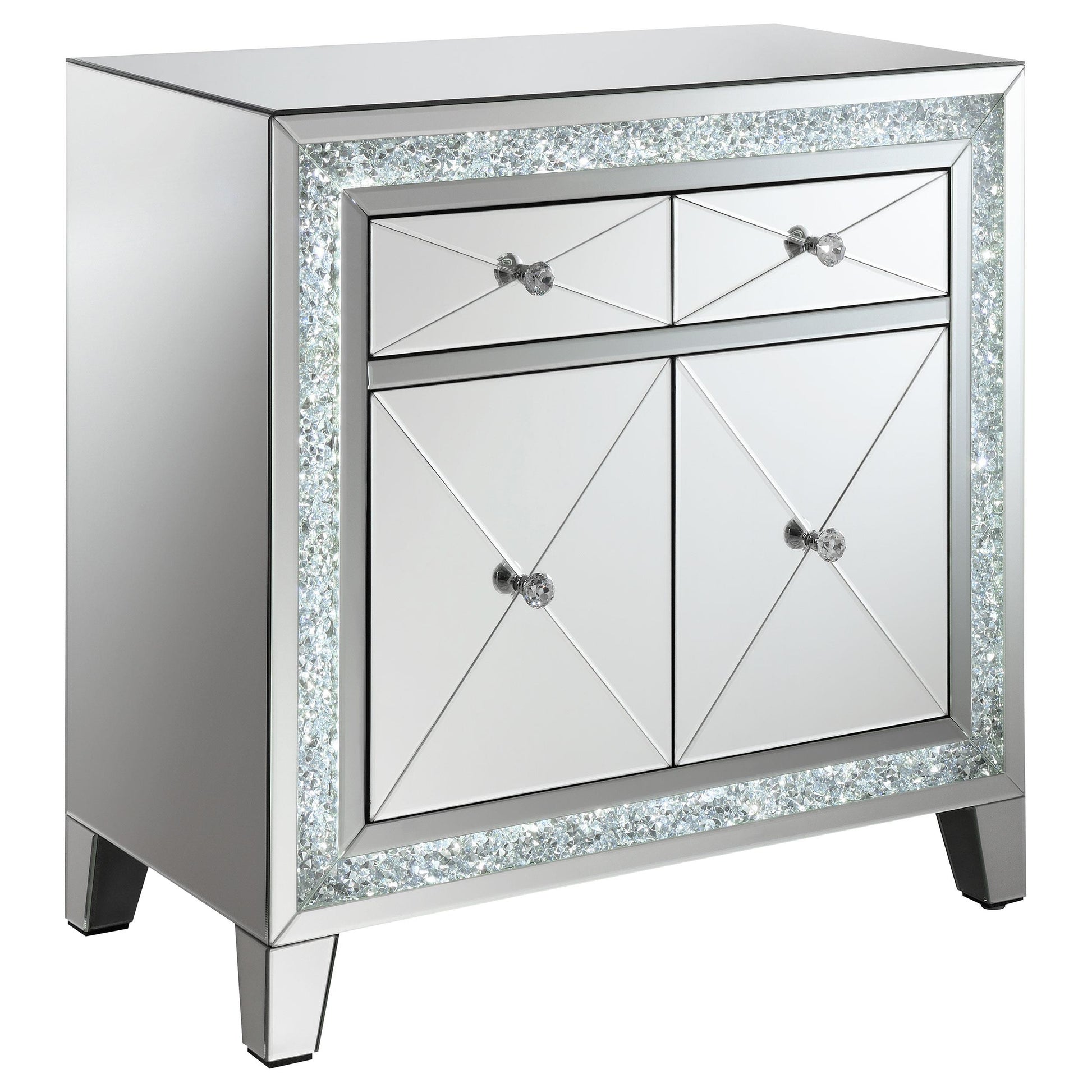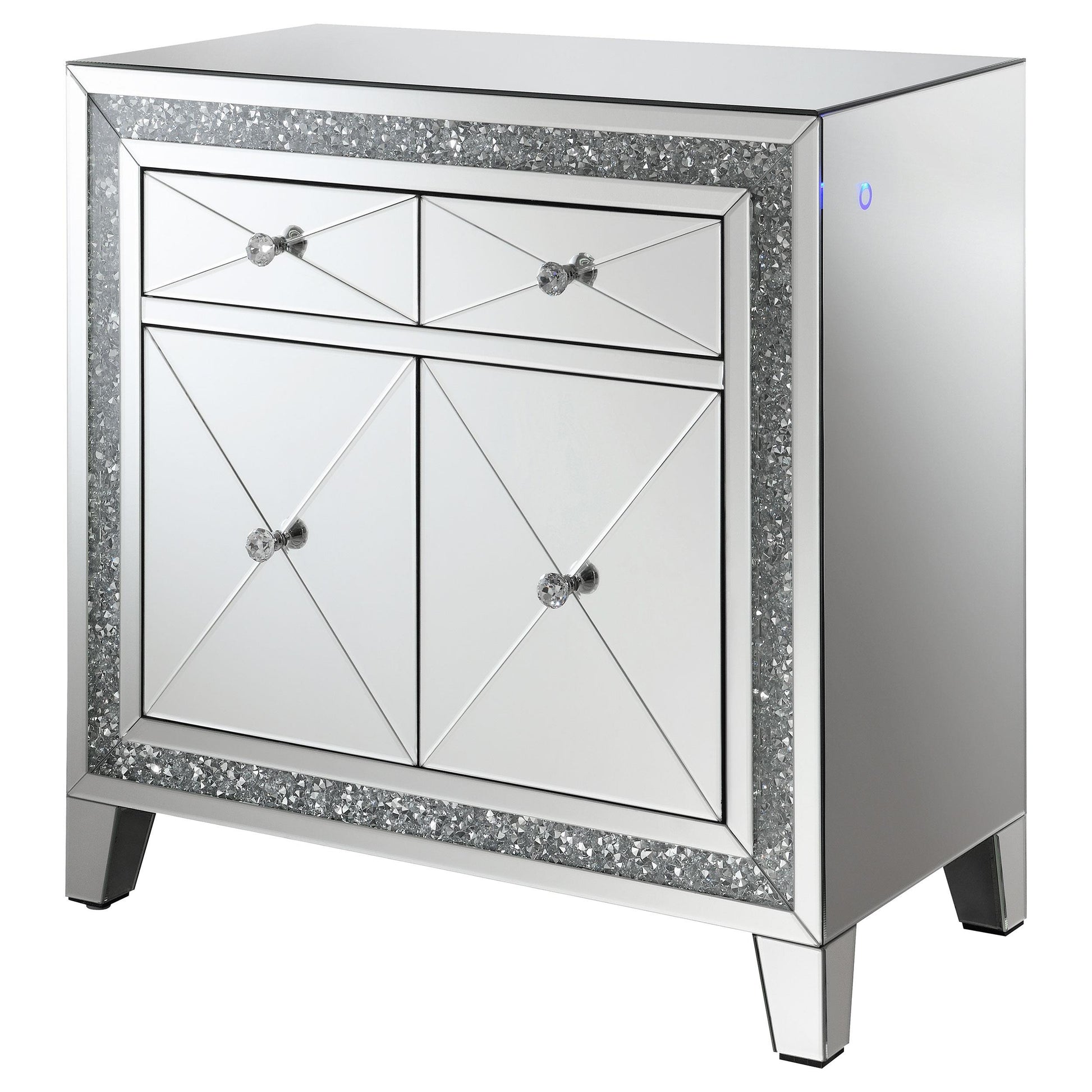 Introducing the Arwen 2-drawer Mirrored LED Lighting Accent Cabinet in Silver—a refined storage piece that adds glamour and practical storage to any room. The two-drawer design provides concealed space for essentials while its mirrored finish catches light to brighten your space. With integrated LED lighting, this cabinet delivers a soft, ambient glow that enhances your decor without overpowering it.