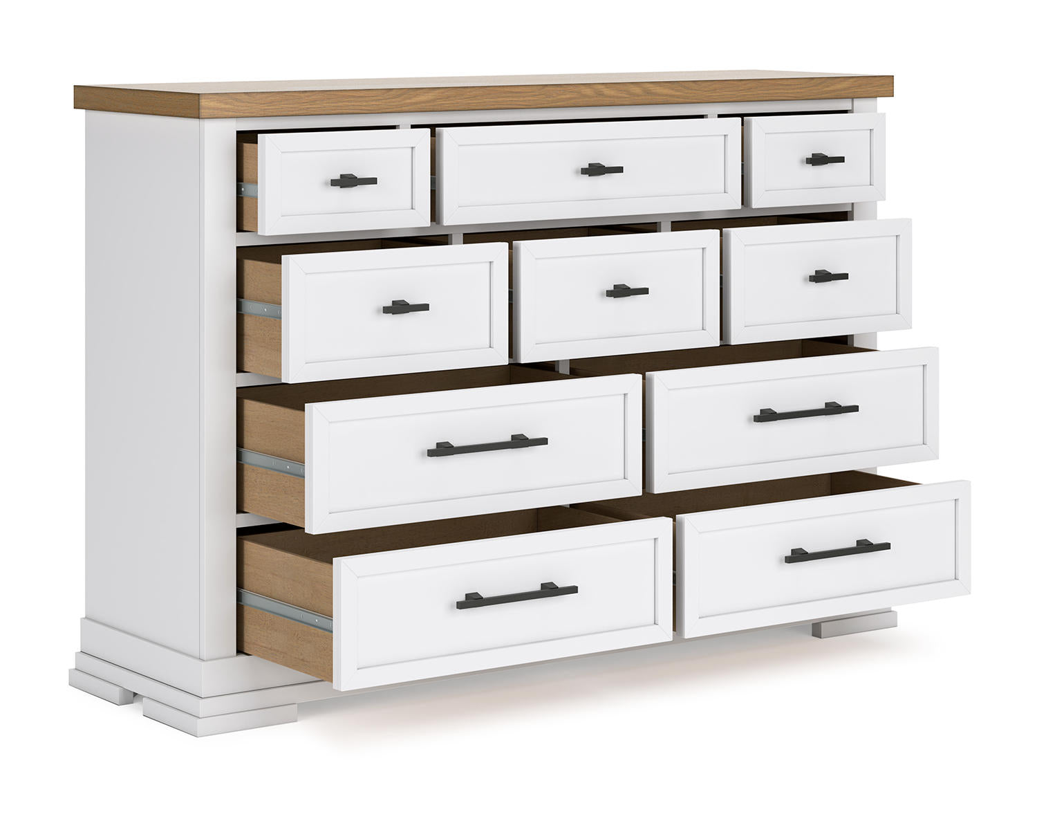 The Ashbryn Dresser is designed to endure daily use with a robust construction that stays sturdy over time. It offers competitive pricing without compromising style or function, delivering value through durable design and timeless aesthetics. Ideal for bedrooms, guest rooms, or any space that needs organized storage with a bright, modern look.