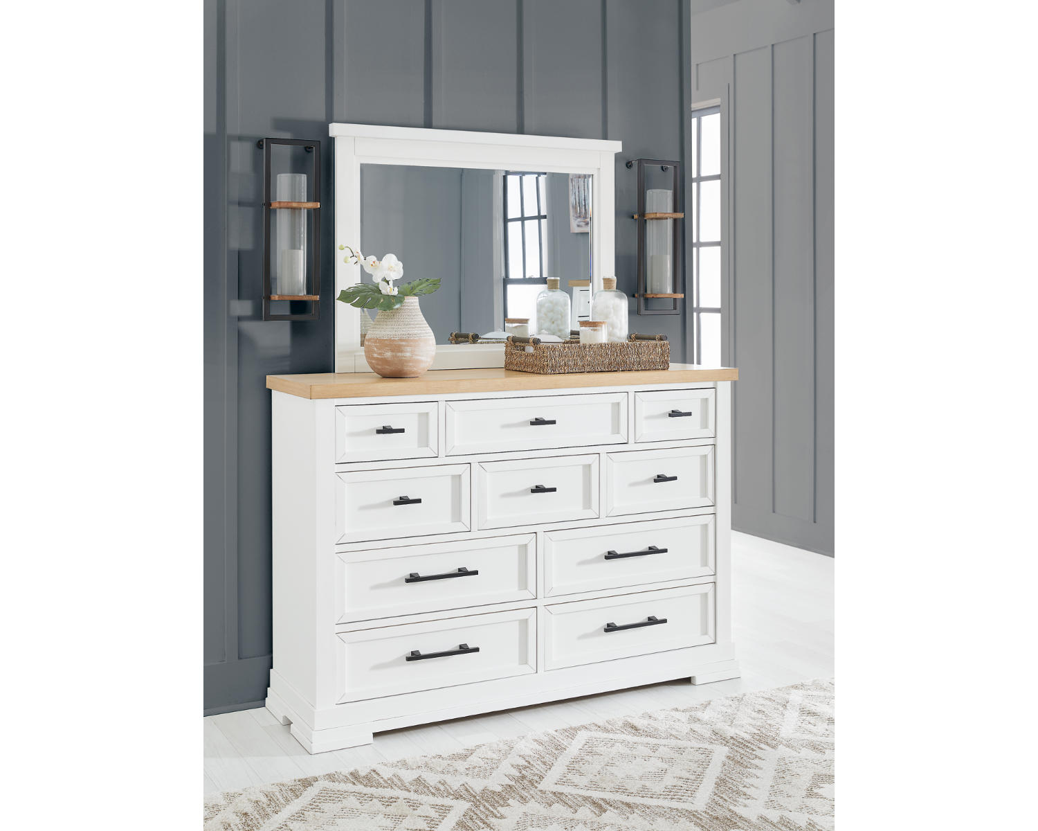 Meet the Ashbryn Dresser and Mirror—an essential two-piece dresser set finished in White and Natural. Designed for modern bedrooms, it combines practical storage with a bright, versatile look. This pair offers clean lines and easy styling for everyday use.