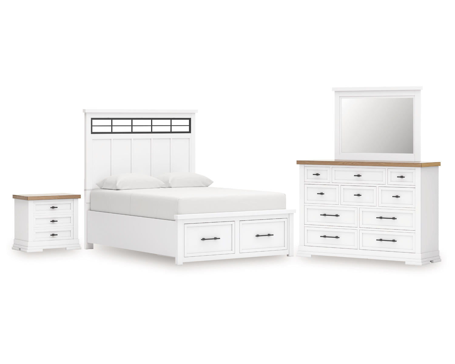 Ashbryn King Panel Storage Bed, Dresser, Mirror and Nightstand