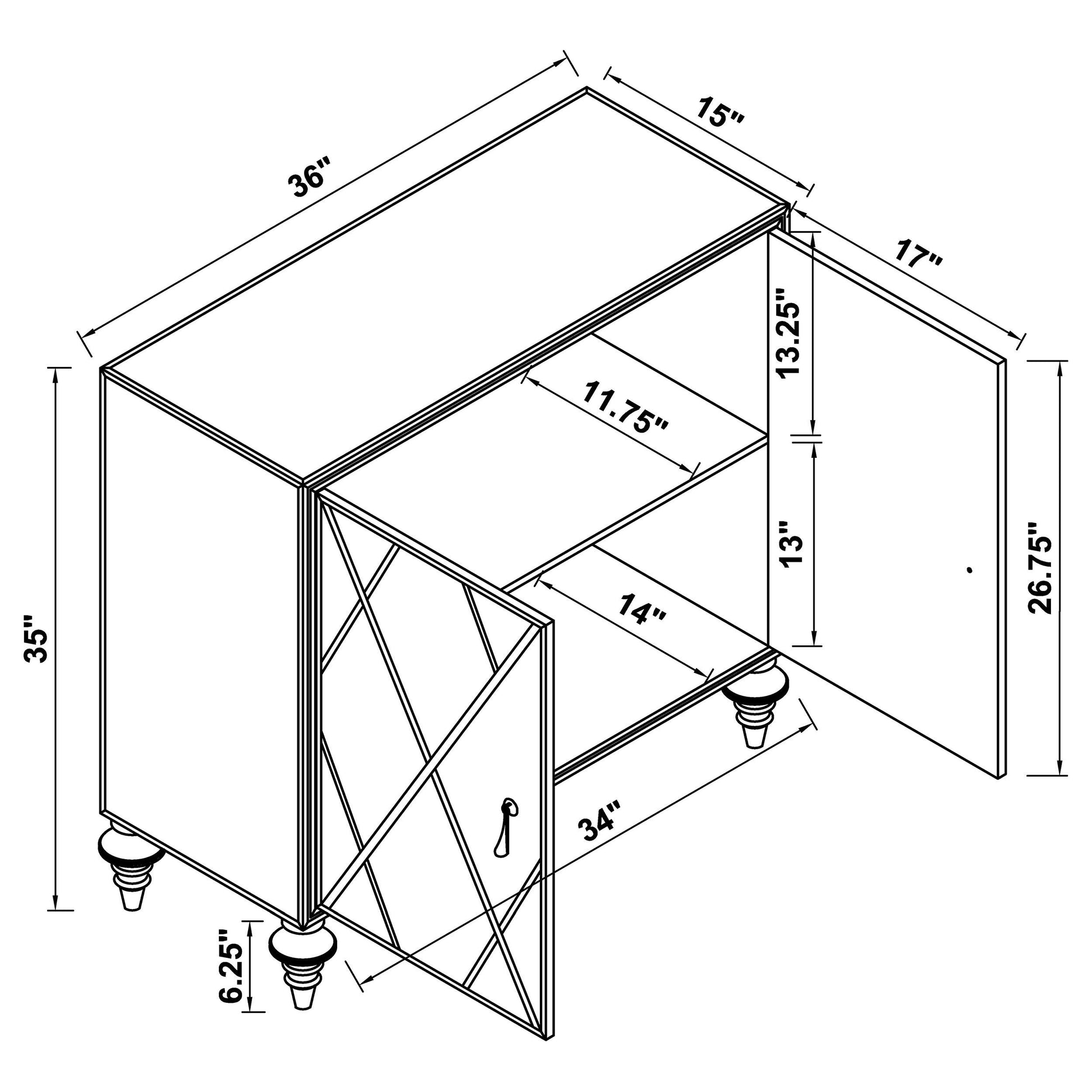 Meet the Astilbe 2-door Mirrored Accent Cabinet in Silver and Champagne — a stylish storage solution designed to brighten any room. This compact cabinet blends reflective surfaces with a warm metallic finish, making it ideal for entryways, living rooms, or bedrooms. It delivers practical storage and a touch of glamour without overpowering your decor.
