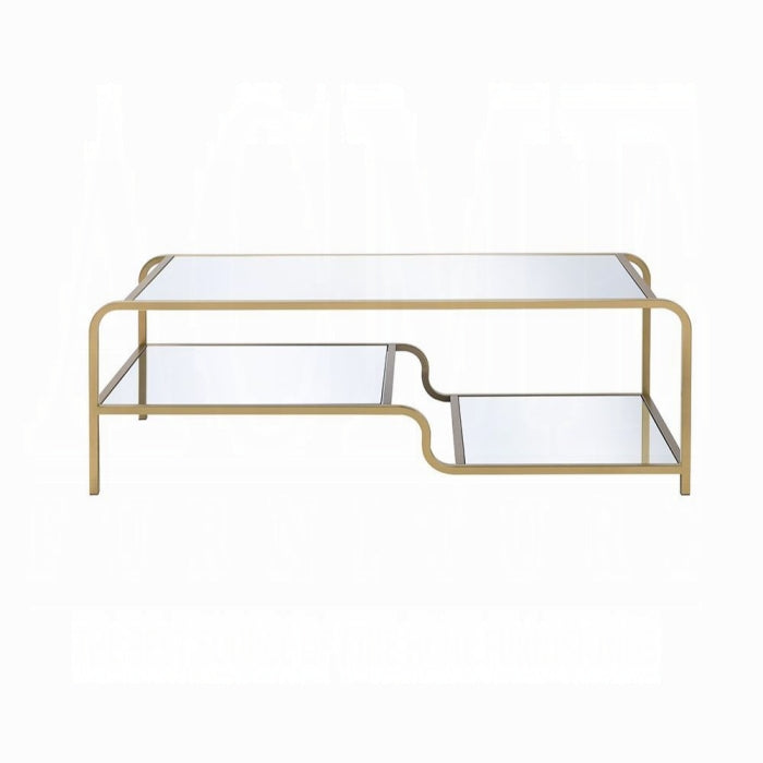 - Curving frame with a refined gold metal coating adds a luxurious, contemporary touch.